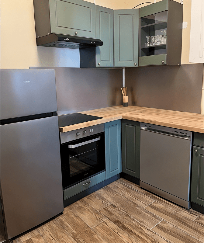 Cette maison de bourg compte 3 chambres, une cuisine avec un réfrigérateur et un four, une télévision, un coin salon, ainsi que 1 salle de bains comportant une douche.