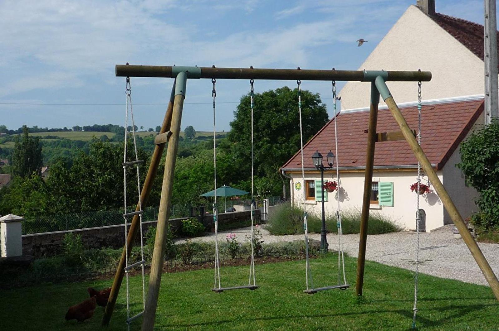 Martine & Jean-François vous accueillent au sein d'une charmante fermette traditionnelle du XVIIIe intégralement réhabilitée blottie à flanc de coteau sud exposé, en "balcon" & "belvédère" panoramique, au cœur d'un petit hameau rural résidentiel dominant Couches, pittoresque bourg médiéval parfaitement sauvegardé & pétri de charme (viticole & commerçant), sis sur le tracé de l'ancienne voie romaine Agrippa, riche de nombreuses commodités & d'un patrimoine exceptionnel (dont le somptueux château de la reine de France Marguerite de Bourgogne datant du XIIIème siècle). Lové en pleine douce campagne des Côtes Chalonnaises sur un secteur protégé en ZNIEFF pour ses richesses floristiques & faunistiques, au creux d'un apaisant vallon conjuguant prairies boisées, bucoliques vignobles, pâtures & forêts, le village profite d'un magnifique écrin paysagé préservé, totalement apaisant. Gîte de très bon confort. Ultra spacieux. Chaleureux cachet campagnard sublimé par l'âme du bâti d'origine (manteau de cheminée en pierres, magistral "corbeau" en pierre, poutres, charpente d'époque à l'étage…). Large terrasse en gravier exposée jouxtant un agréable jardin clos arboré pentu de 300m² (pommiers, pêchers, poiriers, cerisiers… avec cueillette autorisée / "surplus" gratuit du potager également possible à l'occasion) complétée par un terrain de pétanque, une balançoire & un spa extérieur. Très belle vue dégagée sur la campagne environnante.