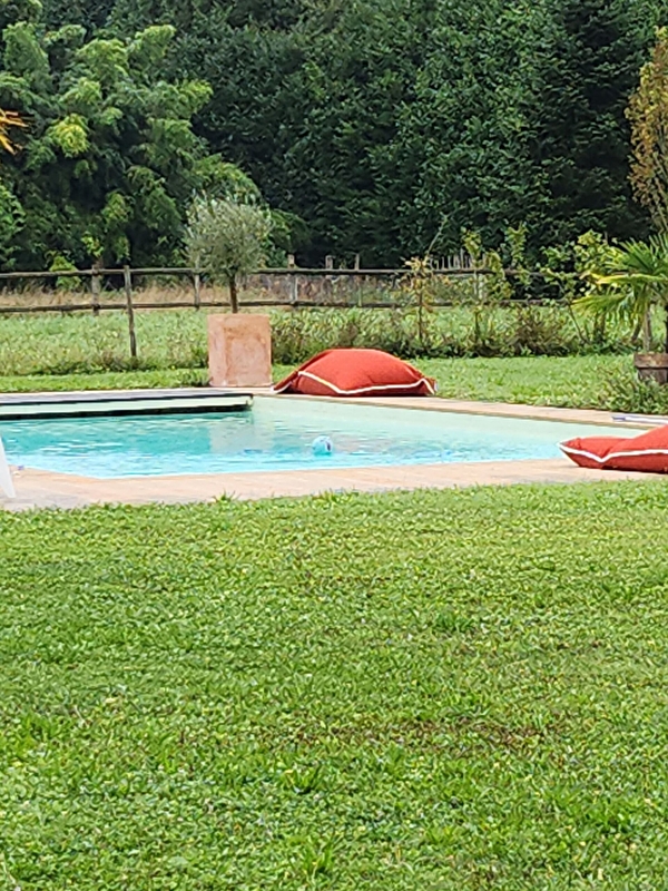 Grand terrain de 3 ha avec propriétaires sur place, piscine commune, étang,...Piscine chauffée ouverte du 1er juin jusqu'au 15/9.