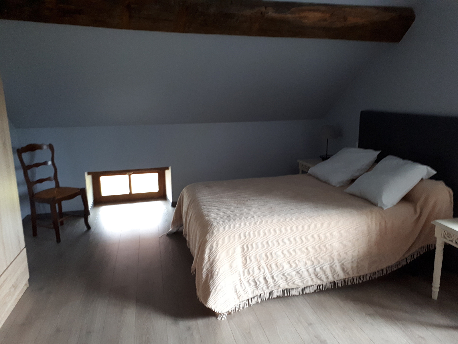 A l'étage se trouvent un salon de repos, une grande chambre avec un grand lit et un petit lit enfant, une petite chambre avec 2 lits d'une personne, une salle d'eau avec WC.