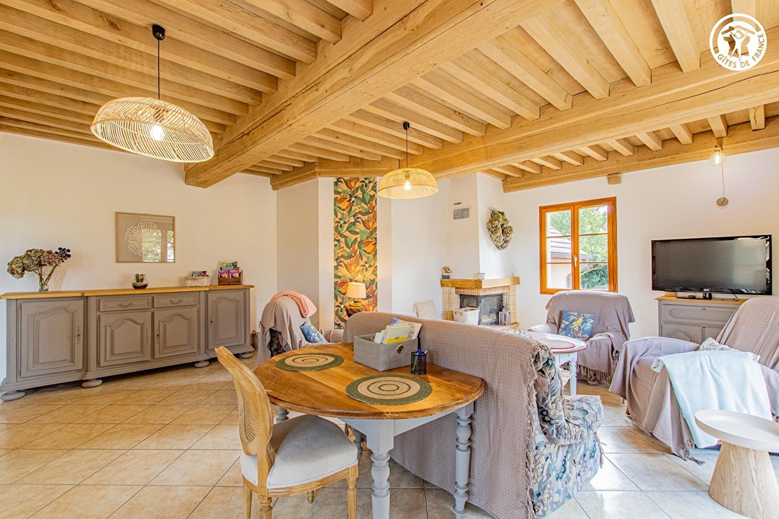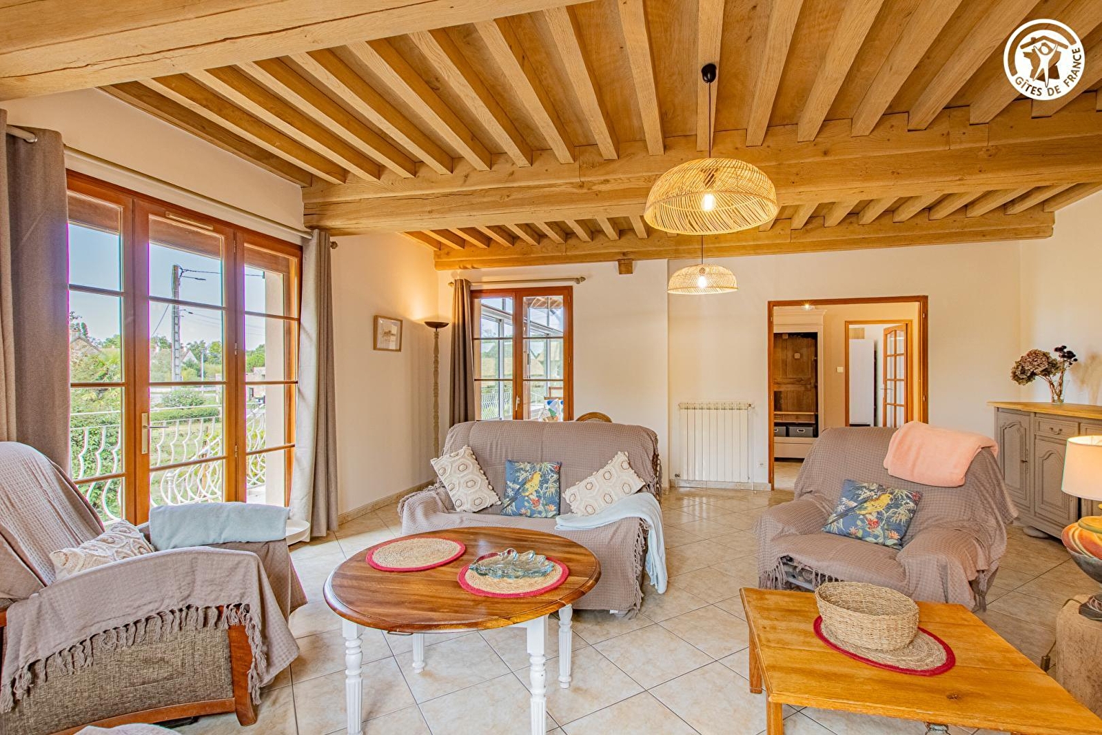 Françoise & Emmanuel vous accueillent au sein d'un pavillon contemporain de style (bâti en 2000), très soigneusement restauré & relooké, sis au cœur d'un petit hameau résidentiel niché aux confins d'un important bourg de la campagne "péri-urbaine" chalonnaise, doté de très nombreux commerces & services (dont plusieurs supermarchés) et d'équipements sportifs & de loisirs notables (dont une belle piscine découverte au style "vintage"). Agréable cadre champêtre & naturel préservé alentour, blotti en lisière de champs de cultures & douces prairies, à l'orée de la vaste forêt domaniale sauvage & préservée de Givry (littéral "poumon vert" du territoire de 1100 ha, à découvrir lors de reposantes balades à pied ou VTT), à deux pas d'une petite rivière poissonneuse, non loin des premiers vignobles des Côtes Chalonnaises comme des rives de la Saône (paradis des pêcheurs & autres kayakistes, espace naturel en partie protégé en Zone Natura 2000 & ZNIEFF pour ses richesses floristiques & faunistiques). Spacieux gîte de très bon confort. Chaleureux cachet campagnard aux accents contemporains. Ambiance zen & très douce. Beaucoup de charme. Cosy & très douillet. Vaste véranda panoramique ultra lumineuse dominant un agréable jardin aménagé de 800m², soigneusement engazonné, fleuri, végétalisé & arboré (riche de nombreux "fruitiers" : vignes, cerisier, figuier, noyer, pêche de vignes, mirabellier / cueillette possible durant votre séjour) offrant un appréciable espace "salon de jardin" naturellement ombragé sous les arbres.