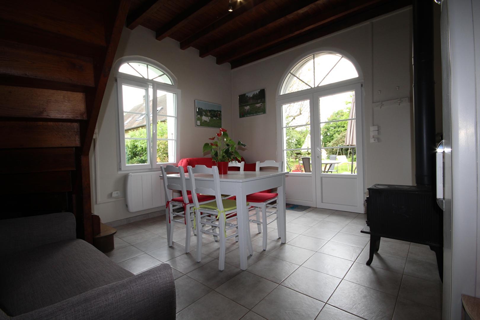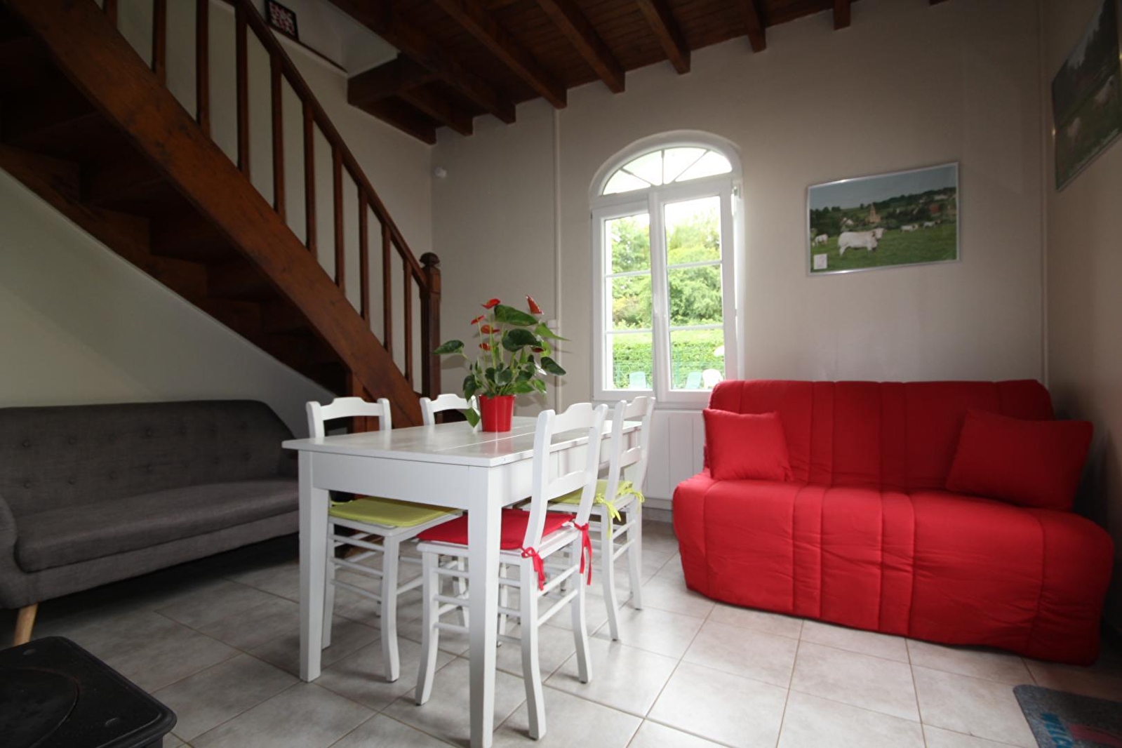 Composition : Maison individuelle jouxtant la maison de la propriétaire. Duplex (rdc + 1er étage). Wifi. Chauffage électrique + poêle bois (bois fourni). Rdc : Séjour-cuisine-salon (convertible 2 p. 140x190cm en appoint), salle de bain (baignoire/wc). 1er étage : chambre (lit 2 p 160x200cm) avec balcon. Terrasse et jardin privatifs sur propriété close commune. Piscine partagée avec propriétaire (10x5m / serviettes plage fournies). Parking privé. Local vélos fermé. Tous commerces et services à 500m. Gare 16 km. Gares TGV Creusot 49 km & Mâcon Loché 53 km. Possibilité d'activité de "vol en montgolfière".