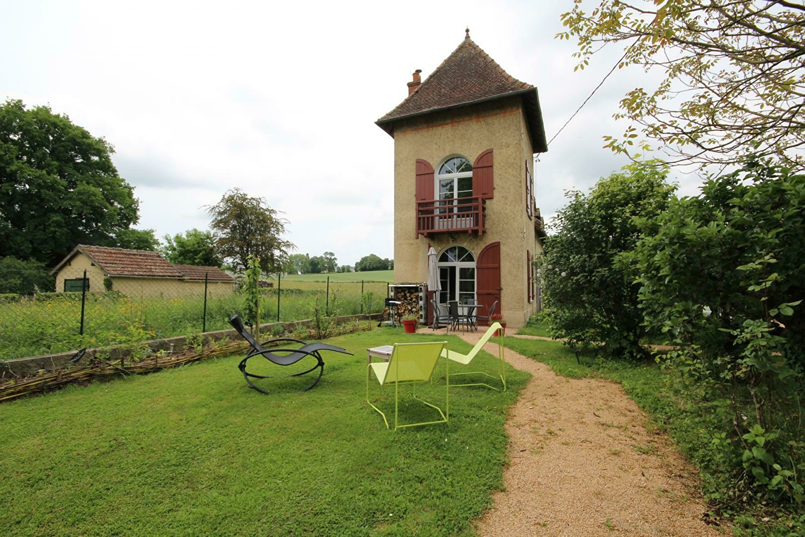 Pavillon de la fin 19ème chargé d'histoire (ancienne villégiature d'été d'une famille de notables locaux) soigneusement restauré, sis sur une vaste propriété close et soignée de 4000m² (fleurie, végétalisée & arborée) dotée d'une belle piscine (10x5m), d'une balançoire et d'un jardin potager. Secteur résidentiel blotti en lisière de prairies bordant le centre de Charolles, charmant bourg commerçant, authentique et typique, doté d'un riche patrimoine des XVème et XVIème siècles (Tour de Charles le Téméraire, couvent des Clarisses, Prieuré classé site clunisien..). Gîte de bon confort. Chaleureux cachet campagnard alliant valorisation patrimoniale et esprit contemporain. Ambiance dépaysante, zen, douce et cosy. Beaux volumes. Petit balcon panoramique avec belle vue dégagée sur la campagne environnante. Large terrasse exposée & ombragée et agréable jardin privatifs.