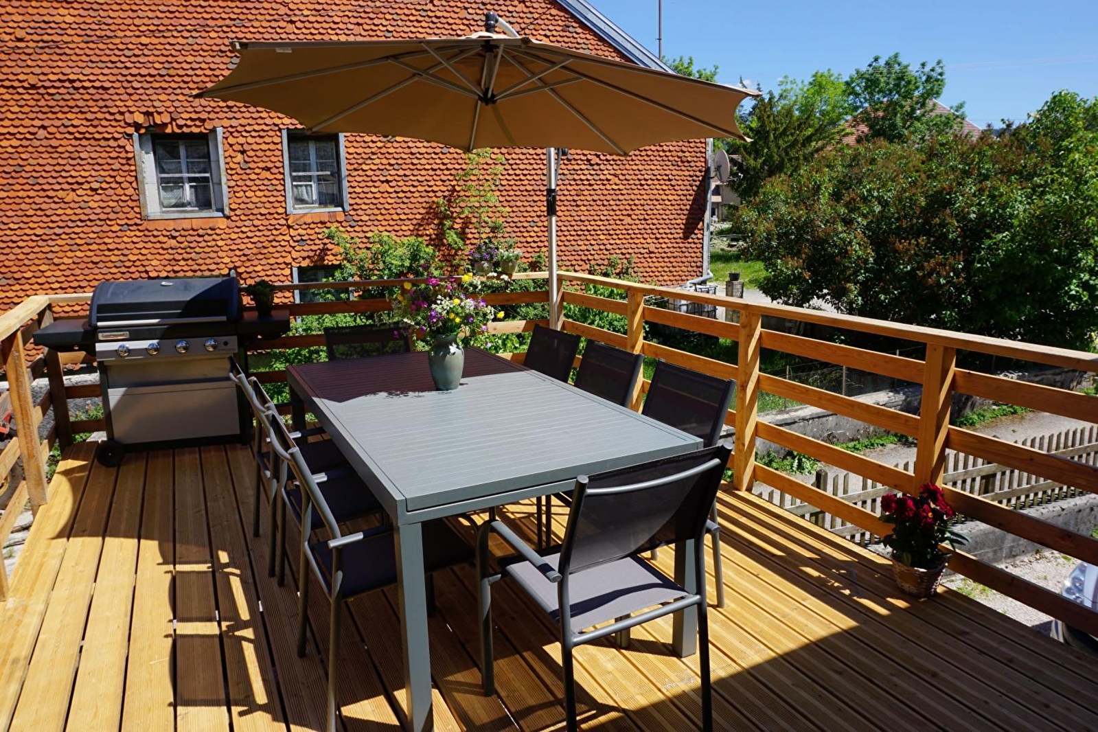 Logement rénové à l'étage d'une maison. Hall d'entrée, cuisine ouverte sur espace repas et coin salon (poêle à bois), deux salles d'eau avec WC. Les chambres se situent à l'opposé pour un meilleur confort : chambre 1 : 2 lits 2 places superposés (possibilité de 2 couchages supplémentaires), chambre 2 et chambre 3 avec chacune 1 lit 2 places. Le gite dispose d'un terrain clos, d'une terrasse de 19m² avec un salon de jardin, barbecue grill plancha et parasol. Box internet par fibre. Possibilité de location de draps 1 personne et 2 personnes avec taie oreiller, linges de toilette et draps de bain. Prise renforcée GreenUp voiture électrique.