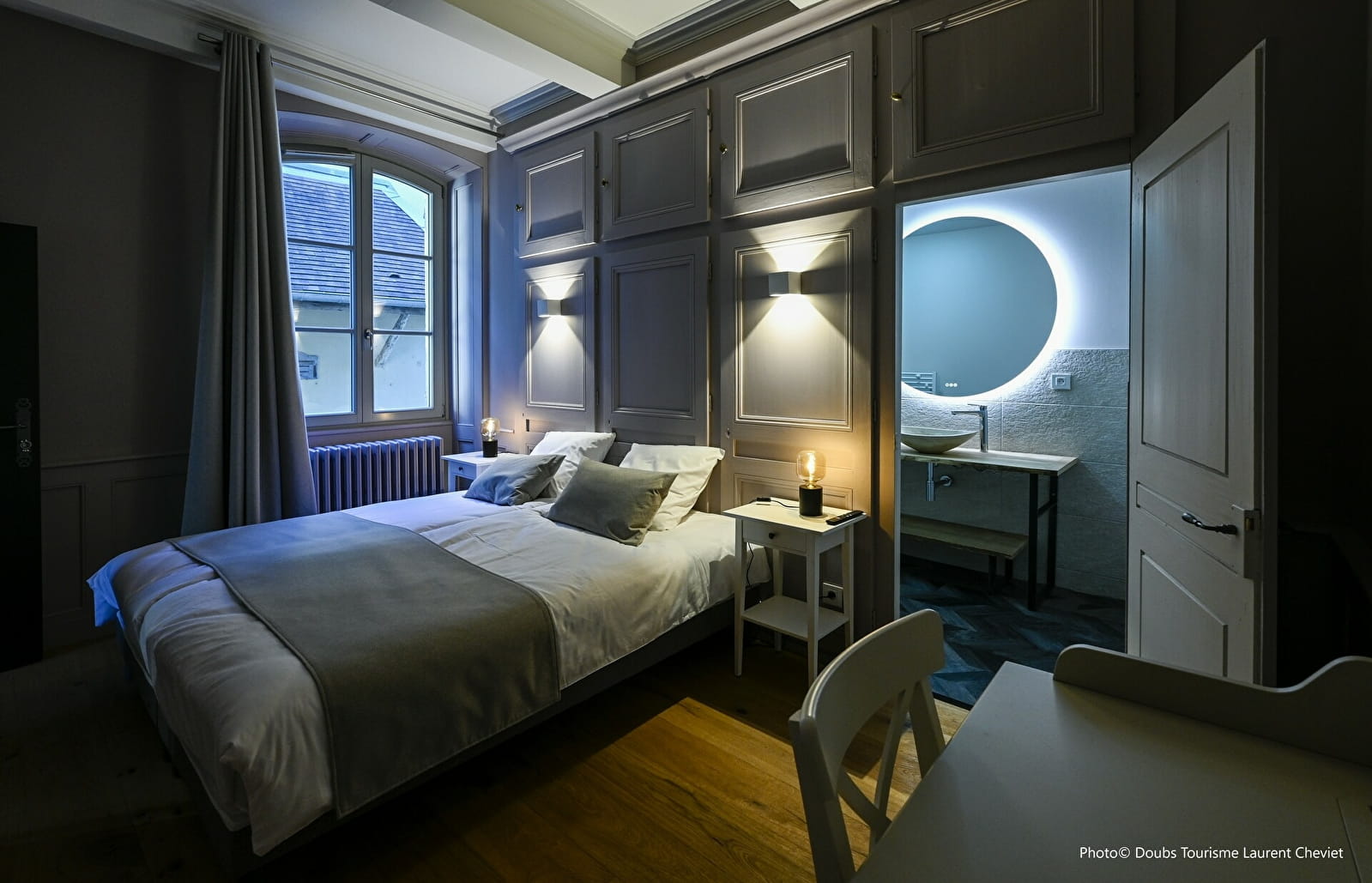 Les Muses, est un ancien hôtel particulier, datant du XVIIIème siècle, entièrement rénové et transformé en 2022, en un lieu de séjour accueillant et chaleureux. Gîte de groupe et d’étape pour 15 personnes, il est composé de 5 chambres doubles et une suite familiale de 5 personnes, avec literie confortable et salle de bains privative. Une cuisine toute équipée vous permet de préparer les repas à partager dans la salle à manger. Vous y trouvez plusieurs espaces détente : un salon pour partager vos jeux ou lectures, une cour intérieure et un jardin d'hiver sous les toits offrant une vue magnifique sur la place et les falaises environnantes. Le sous-sol peut accueillir vos motos ou vélos. Les activités sont nombreuses et variées : le musée Courbet est en face de vous, la Via Francigena longe le bâtiment. De nombreuses randonnées pédestres ou VTT vous permettront de découvrir reculées et cascades. La Loue sera le cadre idéal de vos sorties Kayak et les forêts environnantes de vos sorties accrobranche.