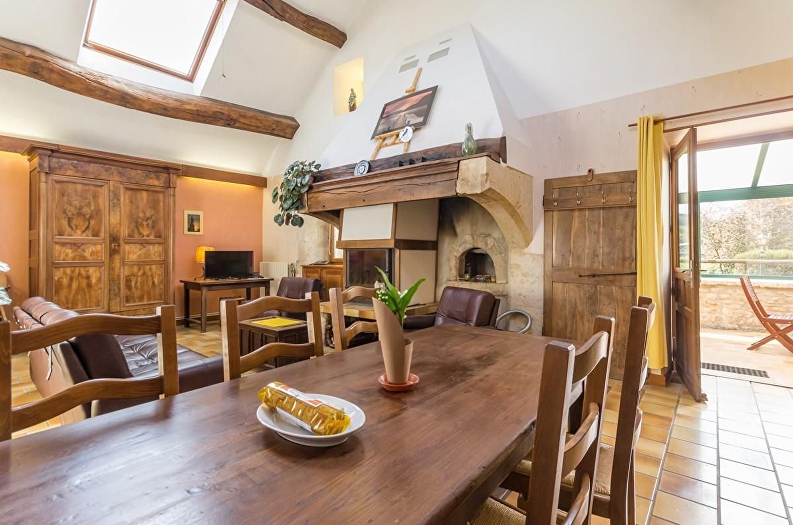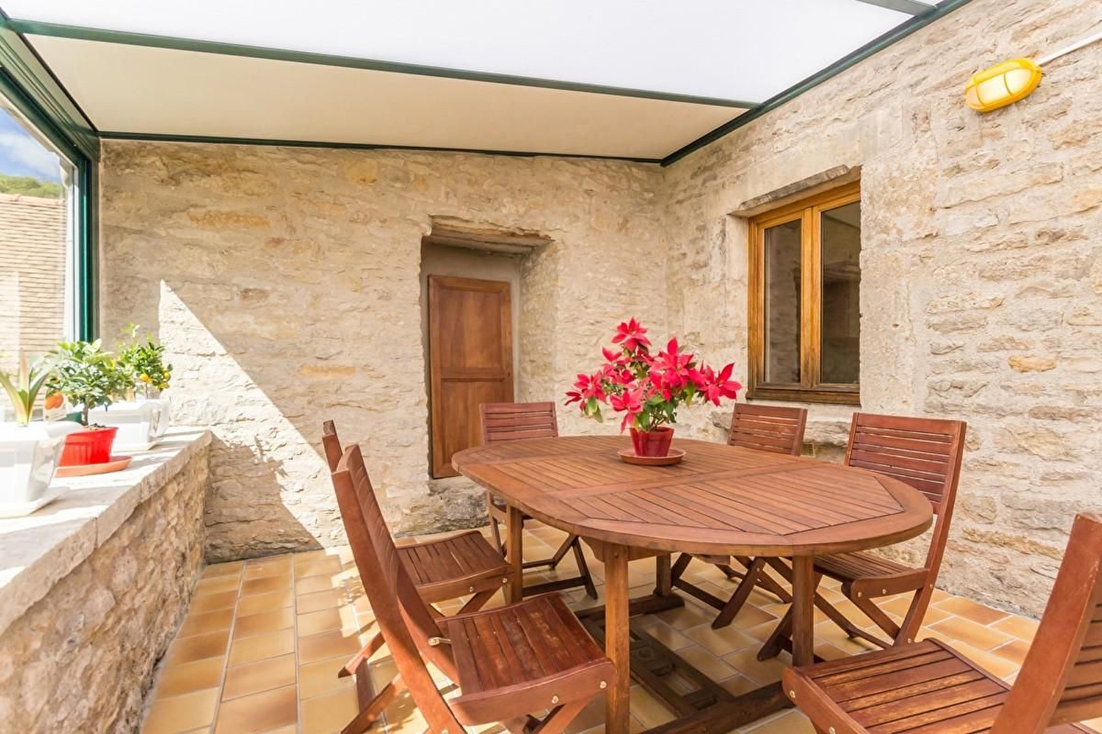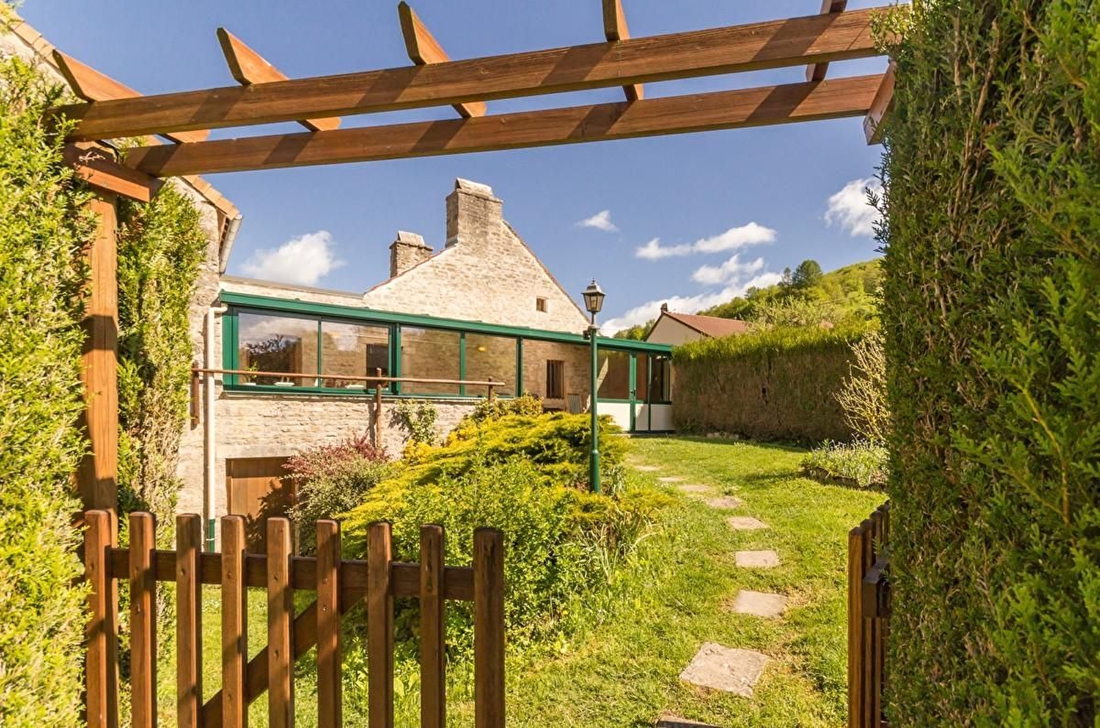 A 35 minutes de Dijon, dans la jolie petite vallée de la Drenne, belle maison individuelle en pierre, sans vis à vis. Entrée par une grande véranda de 32 m² abritant la terrasse. Cuisine intégrée. Séjour lumineux de 40 m² avec poutres apparentes et cheminée à foyer fermé. 2 chambres avec 1 lit 160X200 dans la première et 3 lits de 90X190 dans la deuxième. Salle de bain. WC. Chauffage central. Beau terrain clos de 850 m² en pente douce. Cour pour plusieurs voitures et 2 parkings couverts. Chaise haute et lit enfant. 2 animaux admis maximum, si de petite taille avec caution.