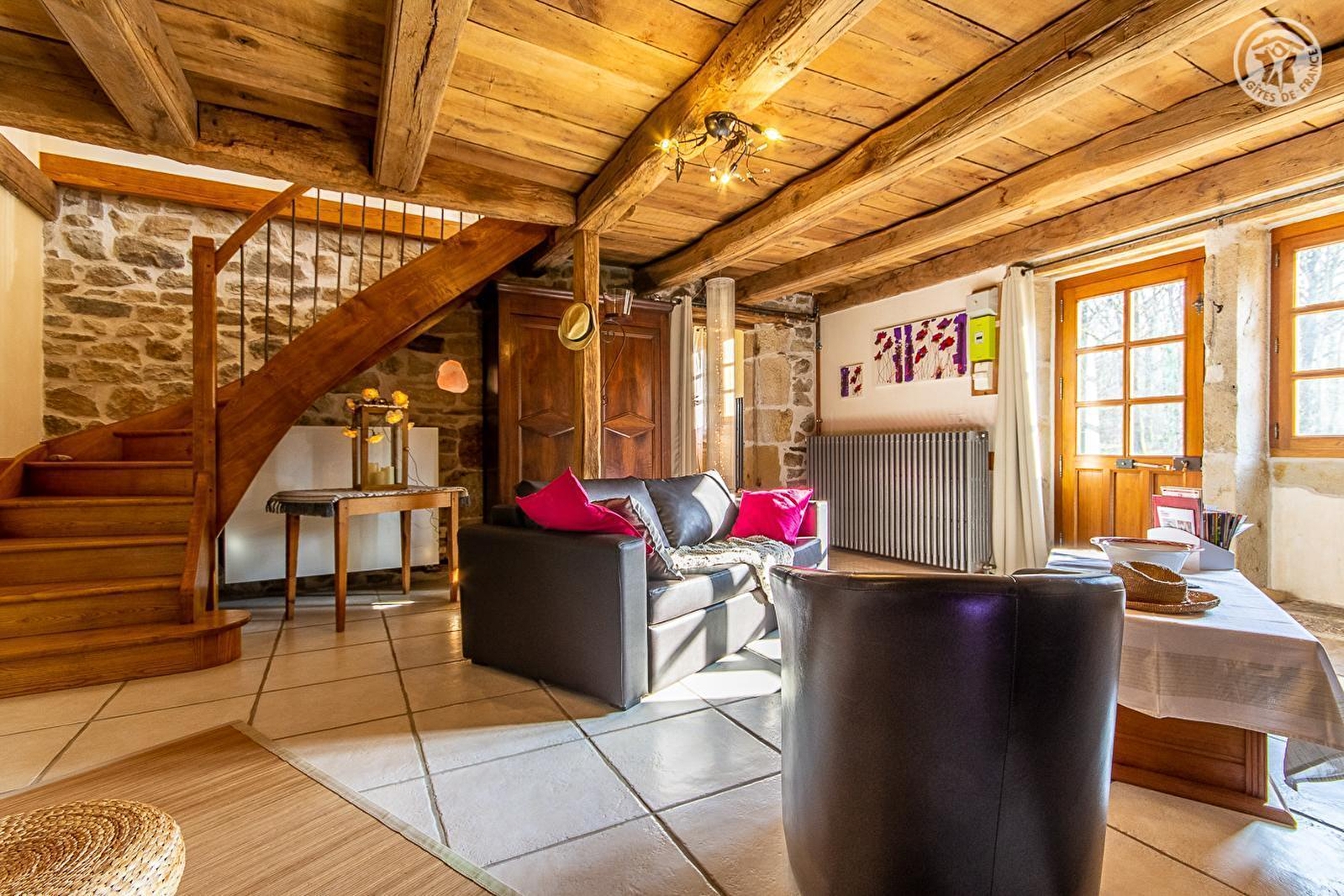 Authentique corps de ferme traditionnel de 1800 chargé d'histoire - élégante bâtisse de caractère intégralement restaurée dans les règles de l'art - lové au sein d'un petit hameau rural à 6 km du charmant bourg typique de Saint-Sernin-du-Bois (nombreuses commodités sur place). Ravissant parc soigné de 5300m² (commun à la propriété), aménagé & fleuri, bordé par d'anciens murs historiques en pierres sèches, véritable aire de jeux naturelle pour petits & grands (avec terrain de pétanque sur cour !). Calme absolu en pleine campagne autunoise au creux d'un magnifique écrin préservé de nature & verdure, avec comme voisins proches les paisibles chevaux, ânes et brebis parqués sur la pâture jouxtant le jardin & la diverse faune sauvage observable sur place. Splendide cadre & site paysager en lisière de bocage, forêt & prairies proche de bucoliques étangs poissonneux. Petit coin de paradis vert enchanteur, idéal pour les enfants. Belle vue sur la campagne environnante. Gîte de très bon confort. Ultra spacieux. Grande pièce de vie. Chaleureux cachet campagnard allié à une belle restauration patrimoniale (murs en pierres, magistrale tête de cheminée, poutres, plafond en chêne, linteaux en briques & bois d'origine). Ambiance douce & dépaysante d'une ancienne demeure. Beaucoup de charme et caractère. Cocooning & cosy. Large agréable terrasse privative, exposée et ombragée.