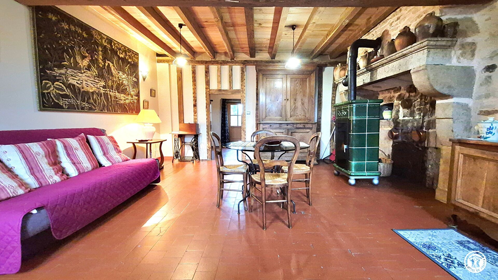 Hébergement tout compris: linge de lit fourni (lit non fait); ainsi que le linge de toilette et linge de cuisine; ménage fin de séjour inclus ainsi que l'électricité, chauffage et granulés.