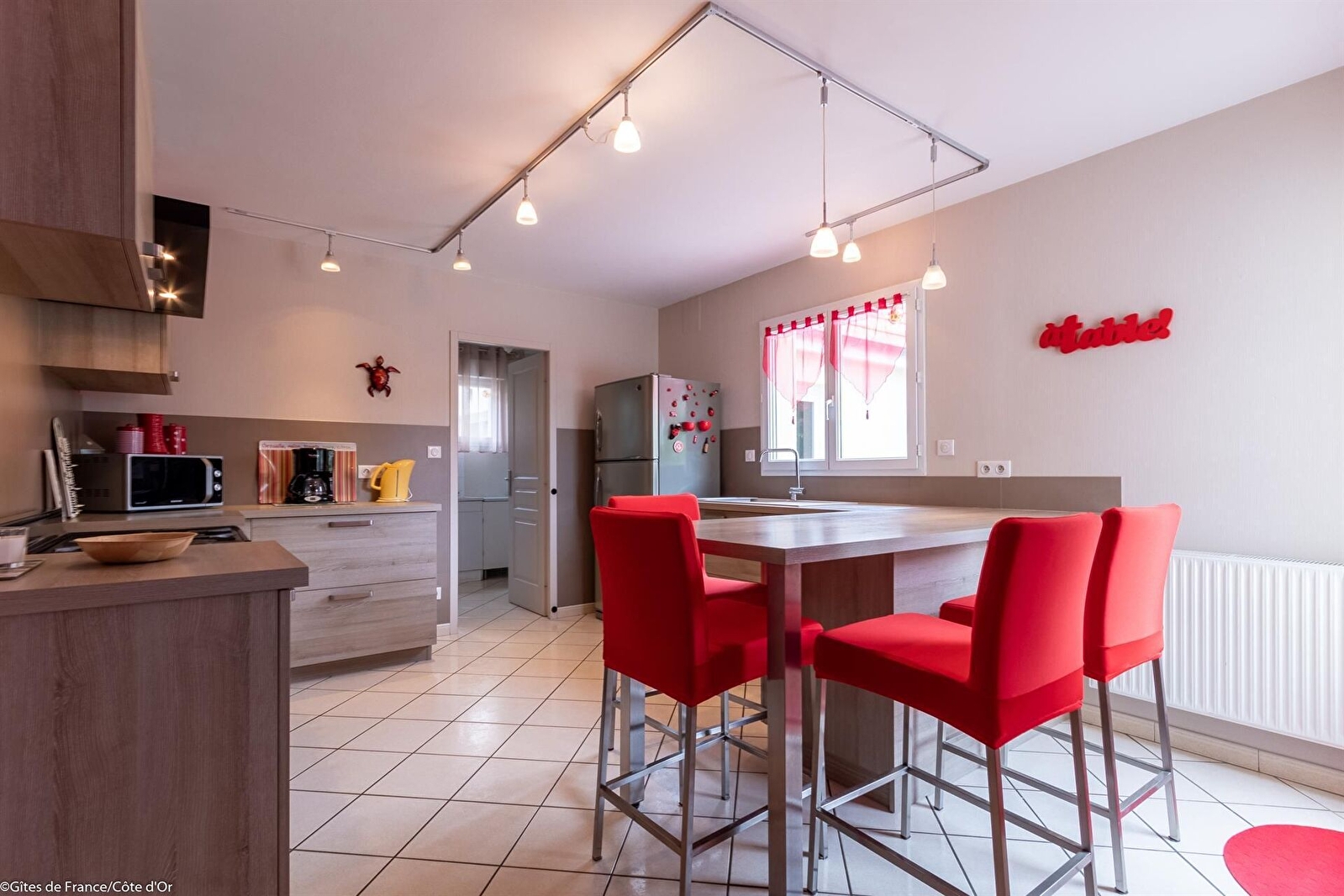 A proximité immédiate de Beaune, la capitale des vins de Bourgogne, maison indépendante récente et spacieuse sur 2 niveaux. Au rez-de-chaussée : grand séjour avec salle à manger, salon et cheminée. Il est ouvert sur la cuisine équipée. Une chambre avec un lit 160 et une chambre avec un lit de 160. Salle d'eau et WC séparé. Buanderie. A l'étage : une chambre avec un lit 140, une chambre avec un lit 160 et une chambre avec 2 lits 90. Salle de bains et 2nd WC séparé.