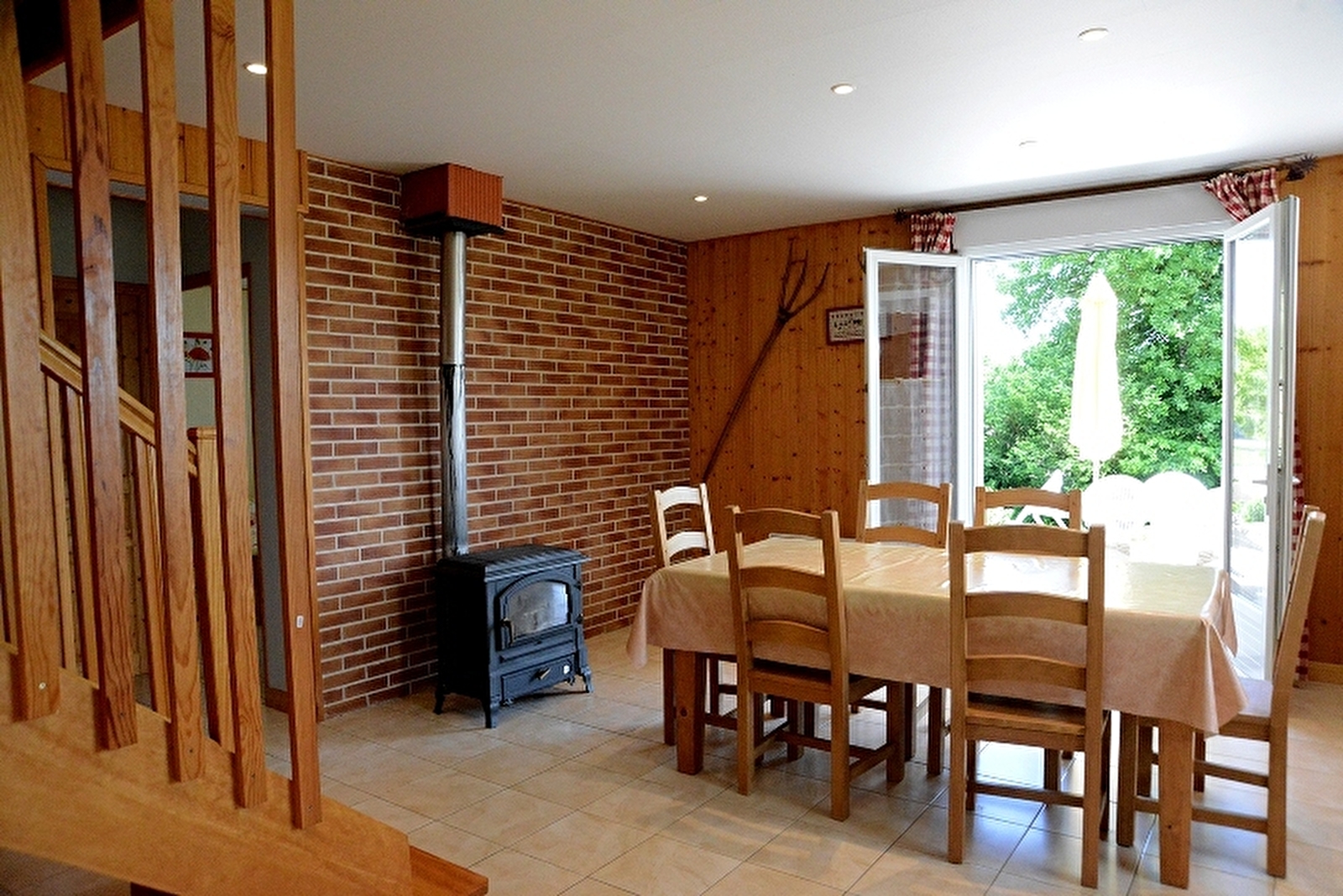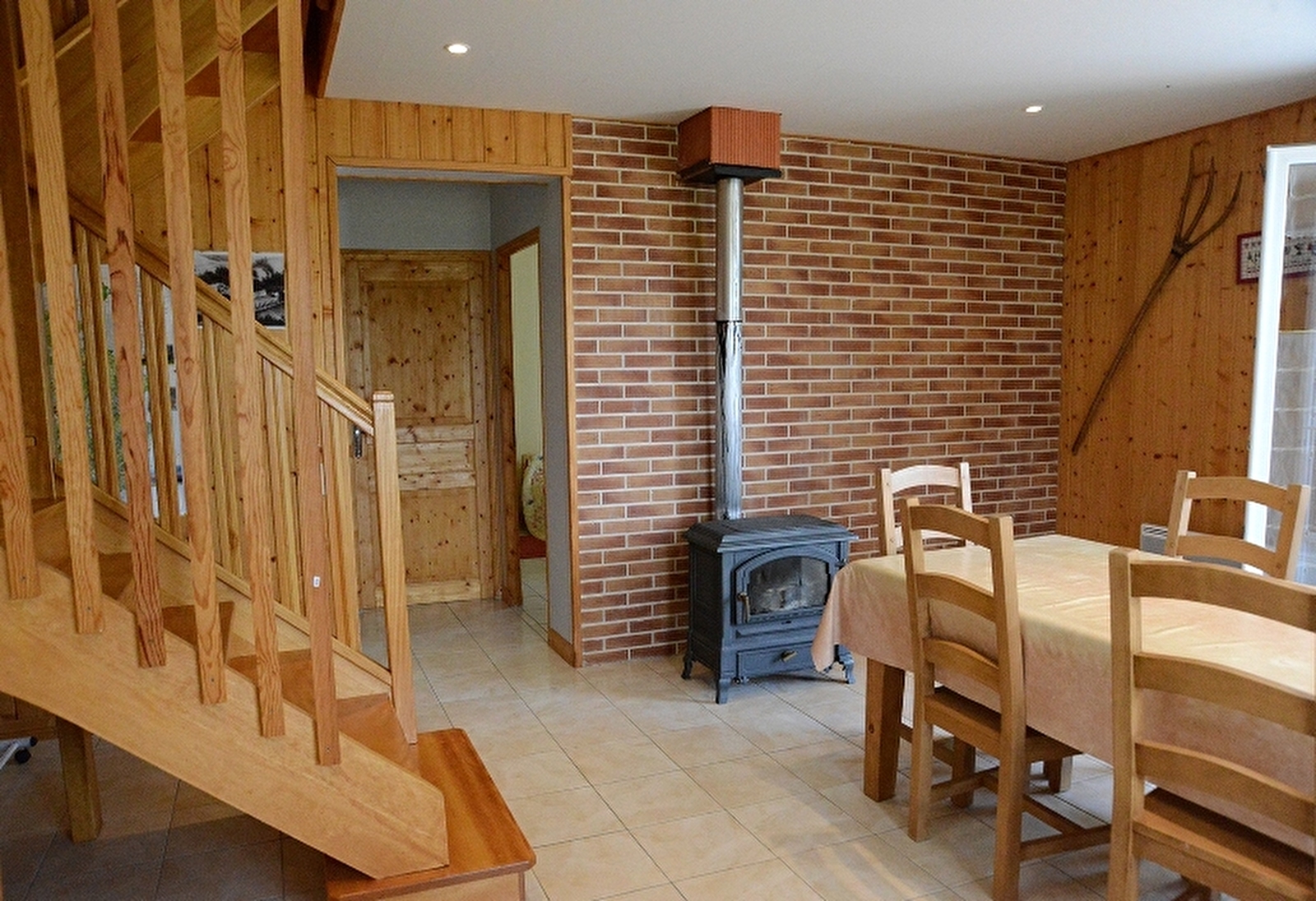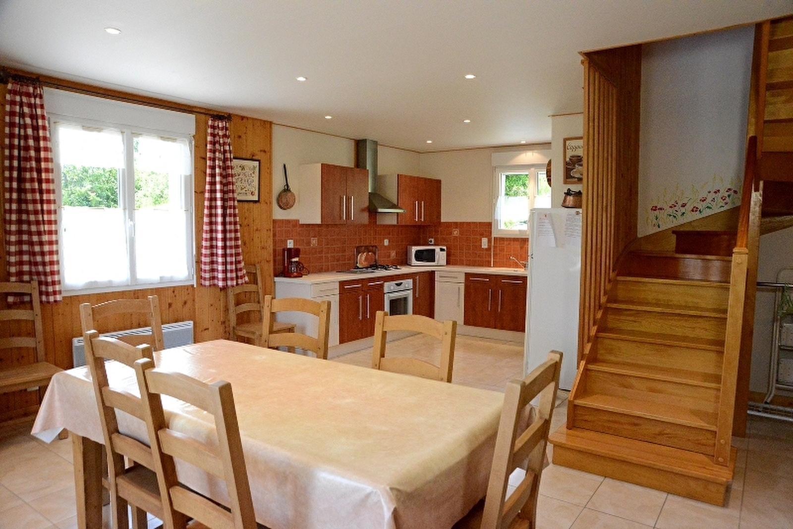 Au coeur de la nature, maison indépendante de plain pied. Grand séjour avec coin cuisine intégré, congélateur, salle d'eau, ch1: 1 lit 2 pl, à l'étage: mezzanine: grand salon avec 2 canapés et accès sur un balcon, salle d'eau, ch2: 1 lit 2 pl, ch3: 2 lits 1 pl. Chauff électrique, buanderie. Terrasse, salon de jardin, barbecue, terrain de pétanque, terrain non clos. Lac de Vouglans à 10 mn, magnifique vue panoramique, calme. Piscine de 5 X 12 M au sol avec barrière de sécurité (ouverte de 11h à 20h), commune à 3 gîtes et chauffée par aérothermie à partir de mi-mai début juin en fonction de la météo. ménage: 80€. Animaux non accepté.