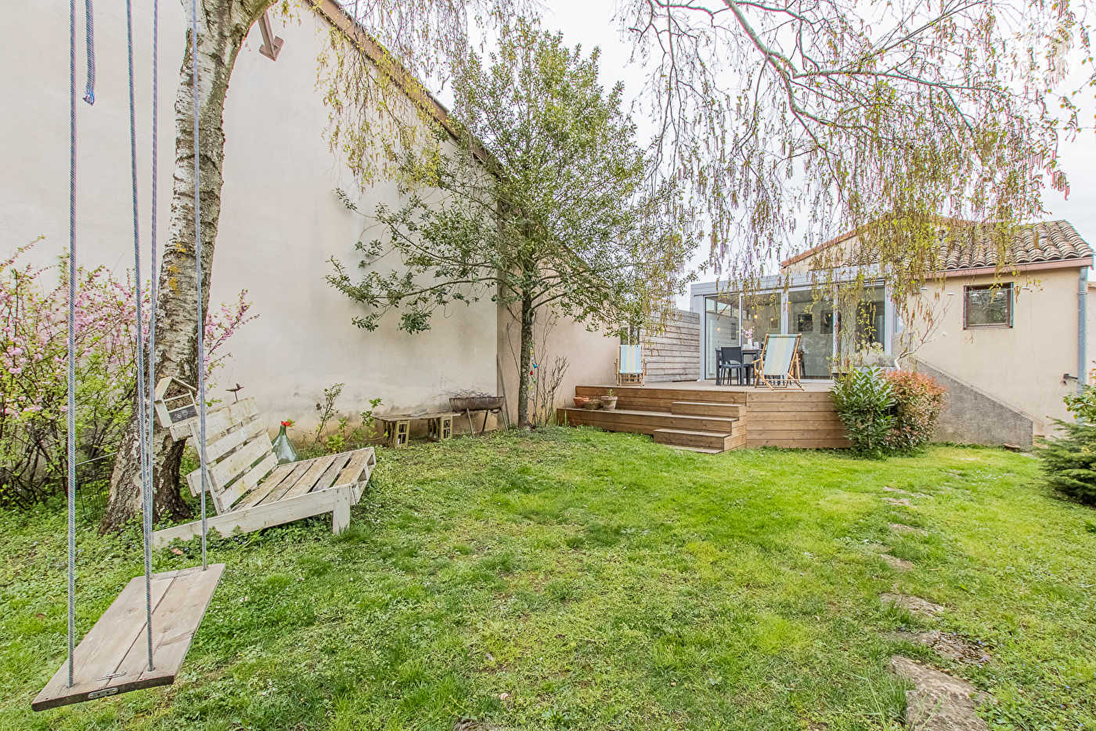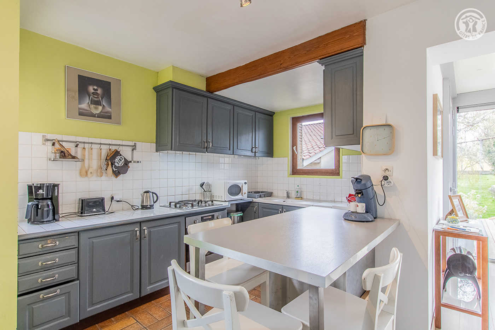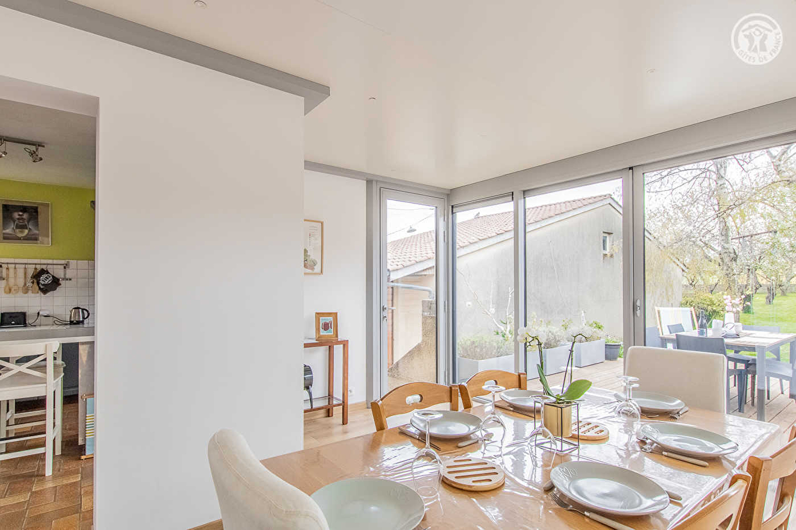 Composition : Maison individuelle jouxtant le cuvage du propriétaire. Wifi. Chauffage central gaz. Rdc : salon (convertible 2 p. 140x190cm en appoint), salle d'eau (douche/Wc). Rdc surélevé (demi niveau) : séjour-cuisine (avec espace véranda), sdb (baignoire), Wc indépendant. 1er ét. : 3 chambres (lit 2 p. 140x190cm / 2 lits 1 p. 90x190cm / lit 2 p. 140x190cm). Jardin clos (600m²) + terrasse + parking privé. Toutes commodités 8 km. Gare 4.5 km.