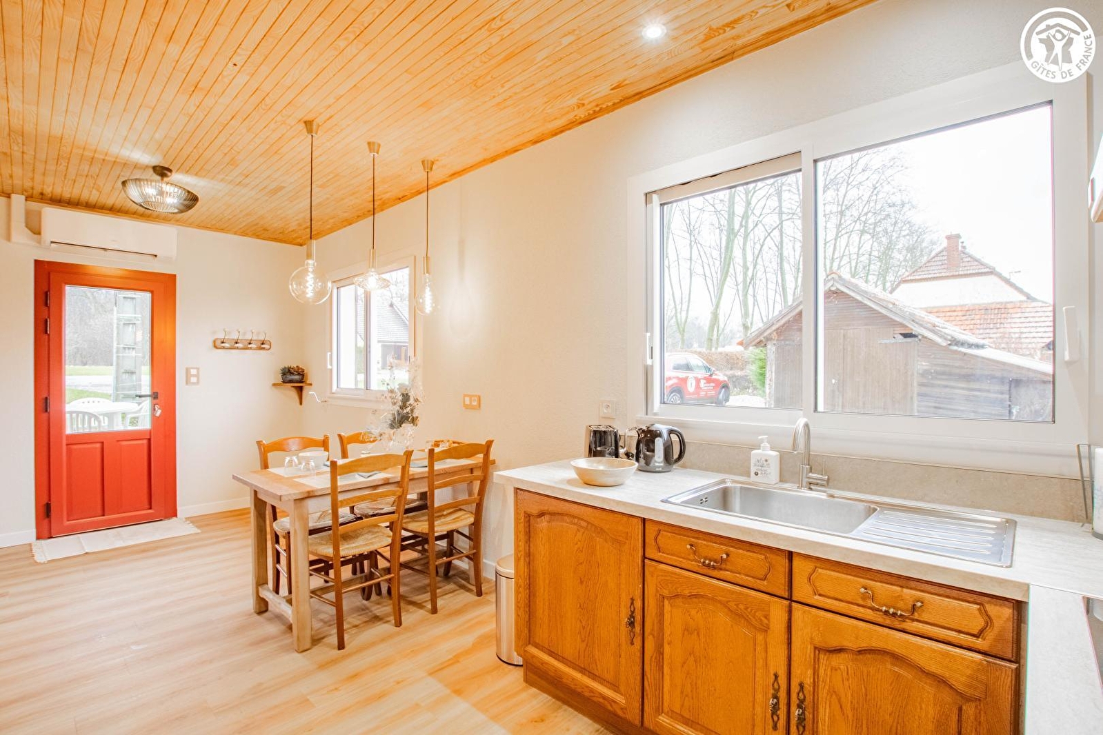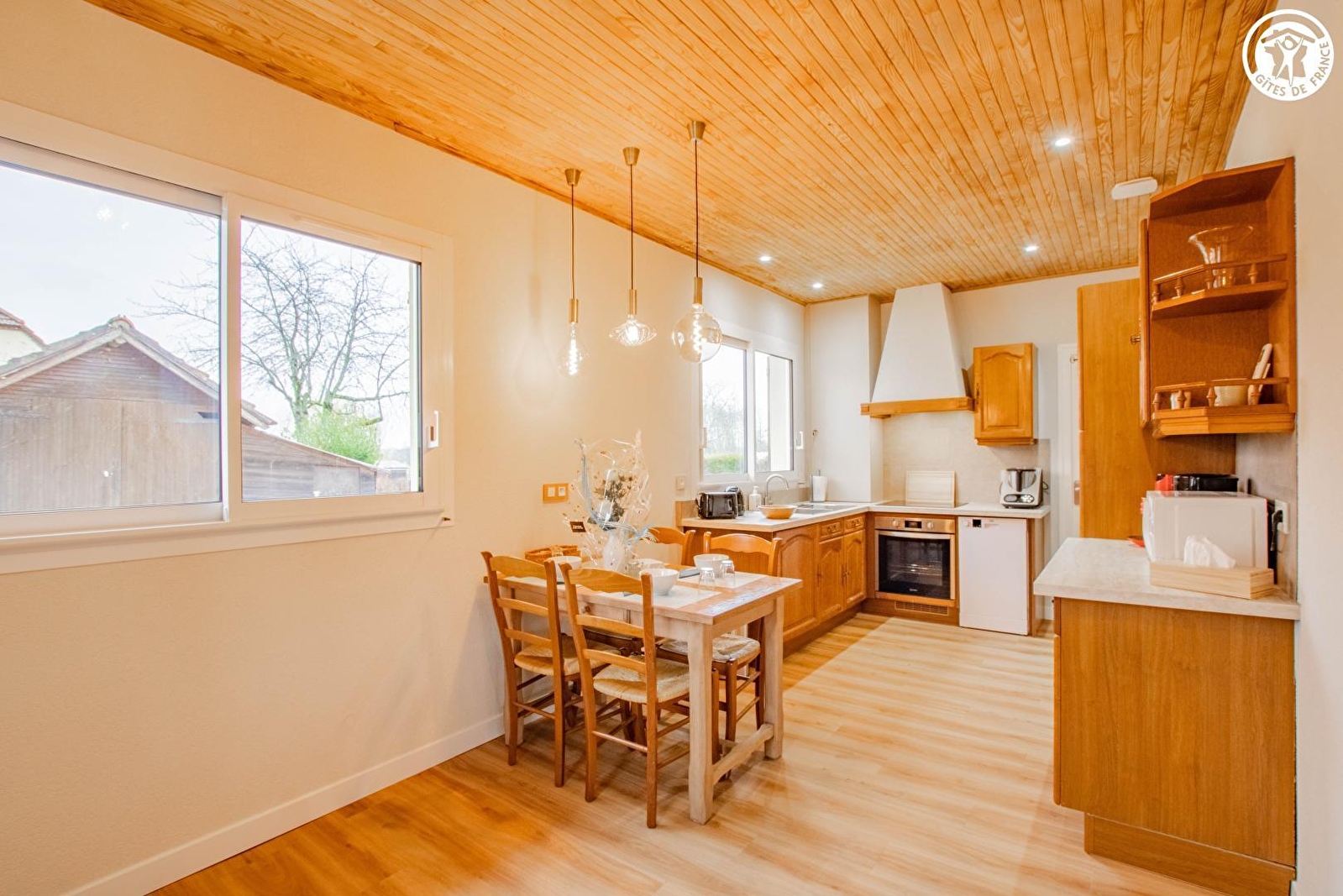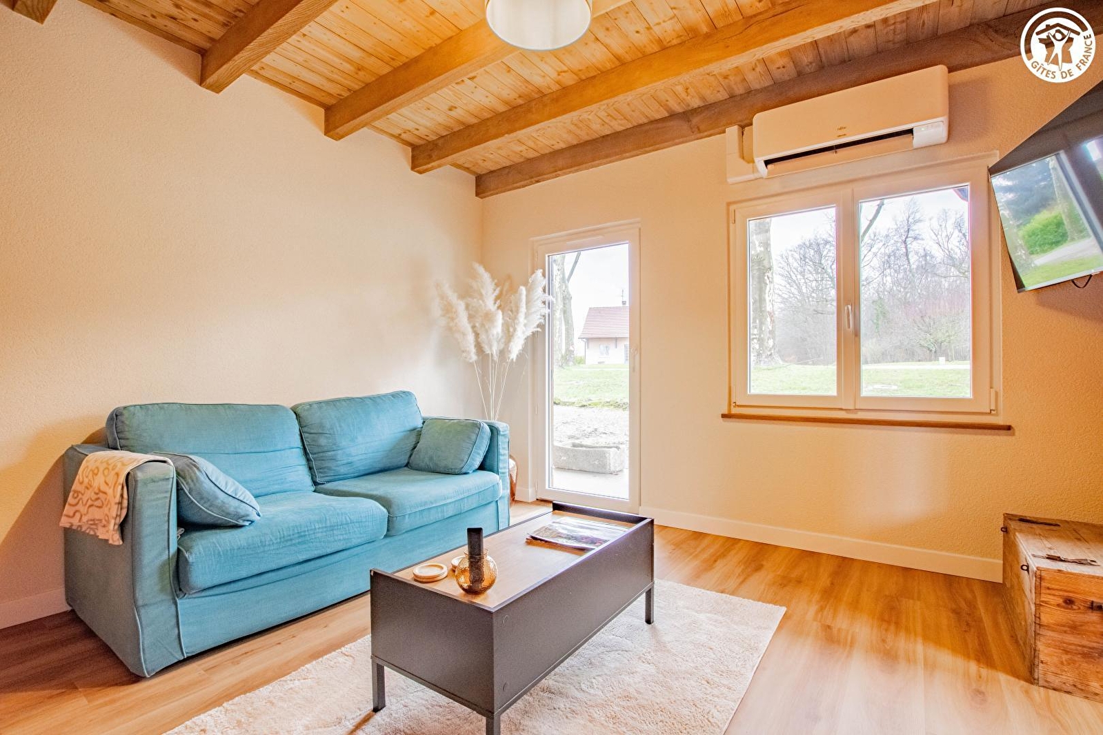 Léa & Maxime vous accueillent dans une ravissante fermette bressane traditionnelle de la fin du XIXe soigneusement restaurée, lovée en bordure d'une littérale "route de vacances de carte postale", totalement dépaysante, historique "allée" bordée de 400 platanes (patrimoine "classé"). Hameau résidentiel niché à l'orée d'un bois, à deux pas de la douce campagne environnante, en toute proximité du cœur du village. Doté de nombreuses commodités (dont supermarché), d'un remarquable niveau d'équipements de loisirs (piscine couverte toute l'année complétée par un bassin extérieur, ludique "aire multi-activités" avec city-stade, skate parc, jeux d'enfants...) et de deux étangs de pêche aménagés (carpodrome en "no-kill" / autre avec "parcours sportif"), le bourg typique de Saint-Germain-du-Bois profite également d'un bucolique écrin préservé, parsemée de nombreux étangs & rivières, conjuguant champs de cultures, verdoyantes prairies bocagères & forêts sauvages (à parcourir lors d'apaisantes balades à pied ou vélos). Gîte de très bon confort, riche d'une atypique architecture intérieure. Chaleureux cachet campagnard aux accents contemporains, "twisté" de quelques savoureuses petites touches "sixties". Beaucoup de charme. Cosy & douillet. Large terrasse exposée & ombragée. Possibilité de visiter "la micro-ferme" des propriétaires habitant sur place (accueillant chèvres, moutons, poules, oies, canards etc…), pour le plaisir & privilège rare d'œufs frais et miel "fait maison" en bonus !