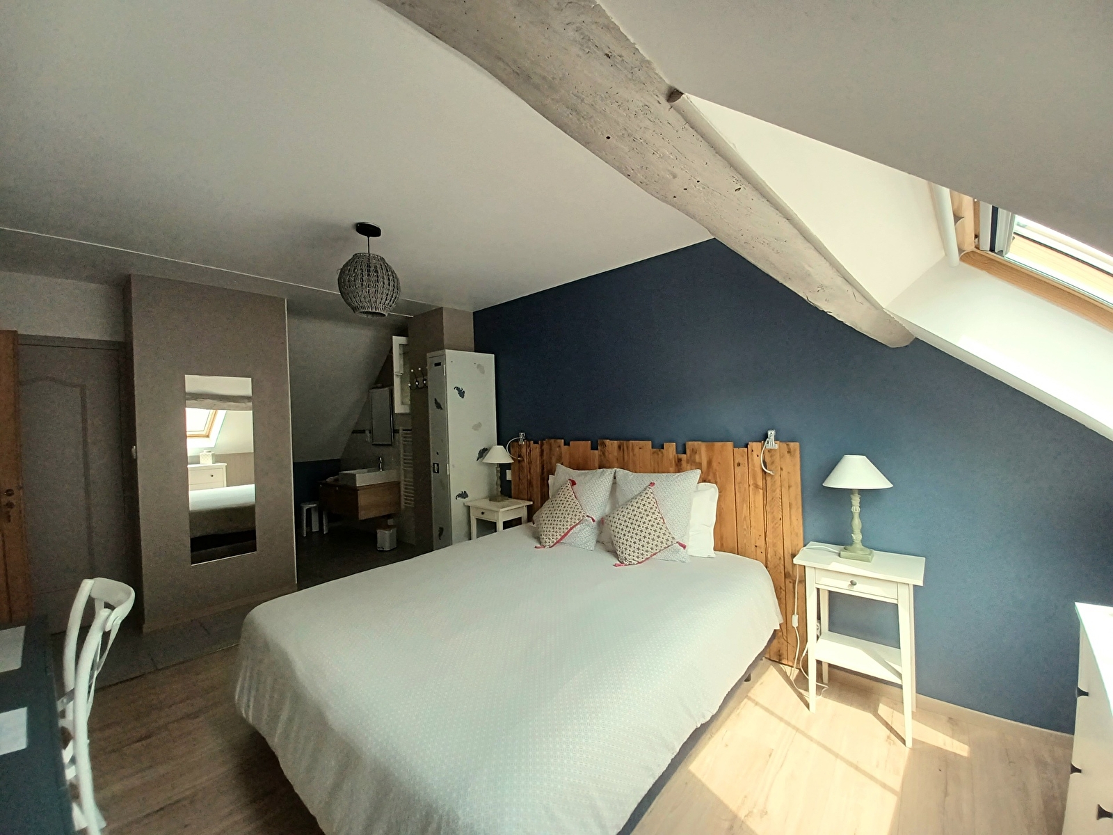 Les 2 chambres tout confort et climatisées sont à l'étage avec chacune salle de bain et WC séparés. Literie haut de gamme (160x200 et 180x200). Possibilité de 2 lits jumeaux (90x200).