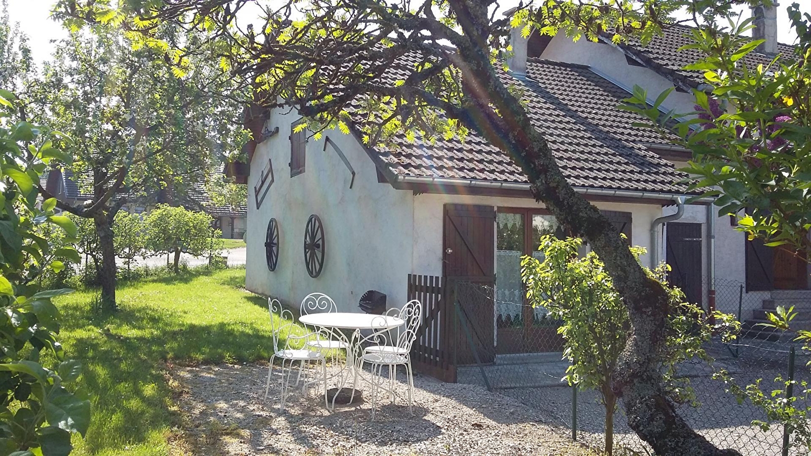 Dans un village tranquille dominant Clairvaux-les-Lacs, entre lacs et forêts, maison mitoyenne, au RDC: séjour-salon, coin-cuisine, poêle à bois, ch1: 1 lit 2 pl, ch2: 1 lit 2 pl, salle d'eau, terrain attenant clos, cour, terrasse ombragée, salon de jardin, barbecue. Chauffage électrique et bois. Toutes charges comprises. Parking privé. Aire de jeux pour enfants et terrain de pétanque à proximité.
