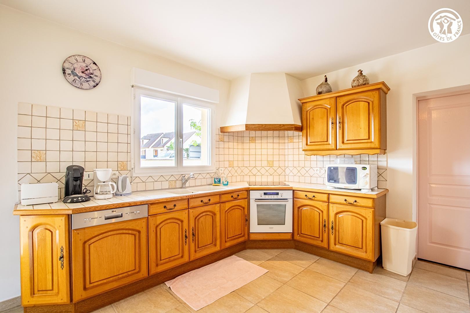 Composition : Maison individuelle. Wifi (fibre). Chauffage PAC + cheminée. Climatisation. Rdc : séjour-cuisine-salon, 4 chambres dont 1 avec TV (2 comprenant 2 lits 1 p. 80x200cm / 2 comprenant 1 lit 1 p. 90x190cm), salle d'eau (douche), buanderie, Wc indépendant. 1er étage : une chambre (2 lits 1 p. 80x200cm) avec salle d'eau privative (douche/Wc), salon sur mezzanine. Terrasse abritée + terrasse + jardin (3000m²) + garage (1 place) + local vélos + parking privé. Supermarché 6 km. Commodités 7 km.