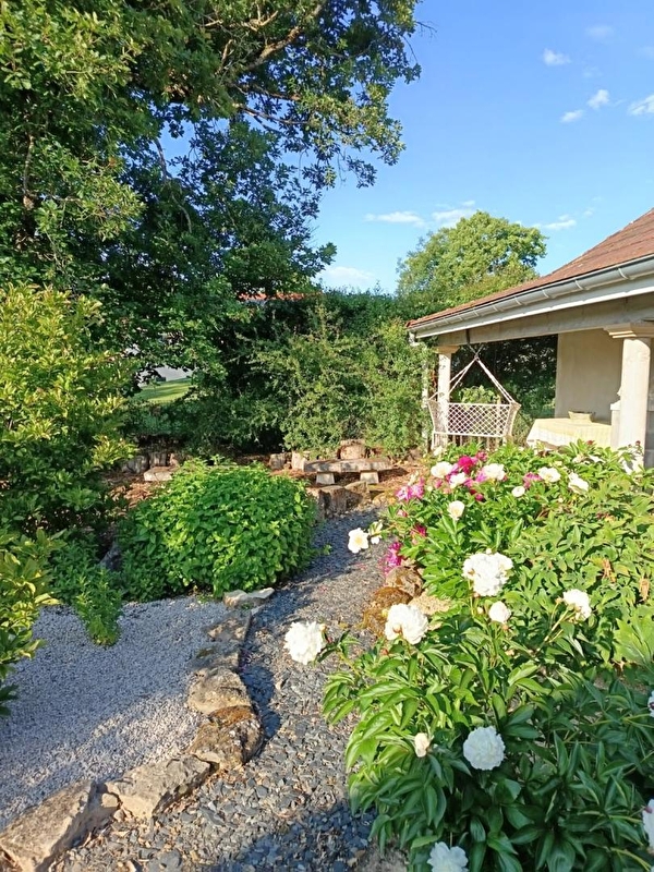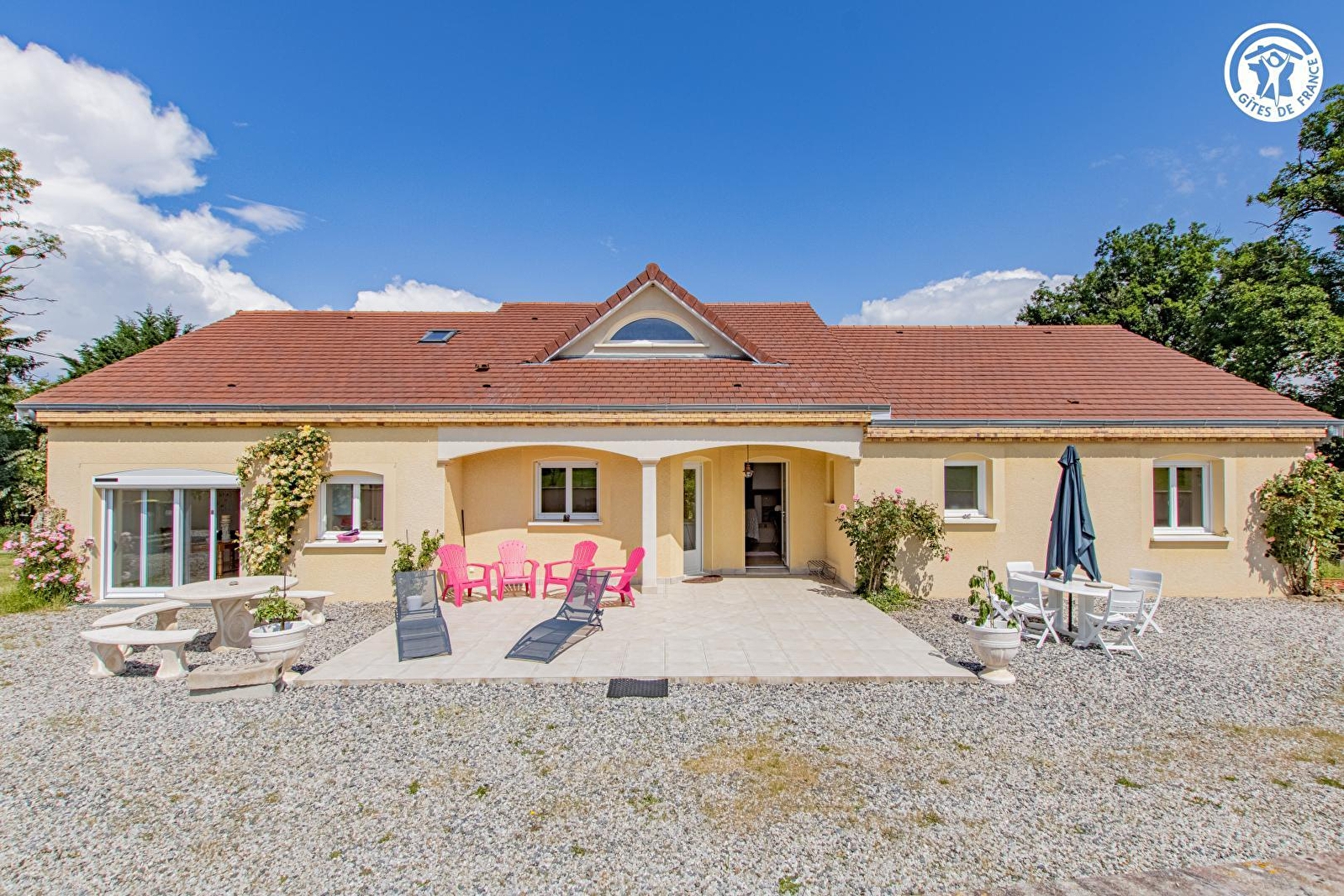 Sandrine & Rémy vous accueillent au sein d'une élégante villa contemporaine de style (2006) perchée à flanc de colline en "vigie" & "belvédère panoramique", nichée au calme au creux d'un paisible mini hameau rural résidentiel lové sur un petit plateau dominant un bucolique vallon de prairies & le centre du village traversé jadis par la célèbre "ligne de démarcation" (site mémoriel de l'ancien "poste frontière" allemand toujours signalé par un poteau). Calme & tranquillité en pleine campagne brionnaise préservée, magnifique écrin vallonné mixant agriculture & pleine nature entre verdoyant bocage boisé parsemé de rivières & d'étangs et belle forêts sauvages (à parcourir lors de relaxantes balades à pied ou VTT), à deux pas des rives de la Loire, le dernier fleuve sauvage d'Europe protégé en ZNIEFF & "Zone Natura 2000" pour son exceptionnel biotope végétal & animal (poissons, mammifères, oiseaux, amphibiens…), axe de migration, reproduction et nidification pour de nombreuses espèces dont certaines très rares. Gîte de très bon confort. Ultra spacieux & lumineux. Vaste pièce de vie dotée d'un imposant volume "cathédrale". Chaleureux cachet campagnard moderne & contemporain. Ambiance douillette. Équipement très complet de qualité. Rare vaste terrasse abritée côté jardin complétée par une seconde large terrasse exposée côté cour. Agréable jardin engazonné & fleuri. Belle vue dégagée sur la proche campagne alentour.