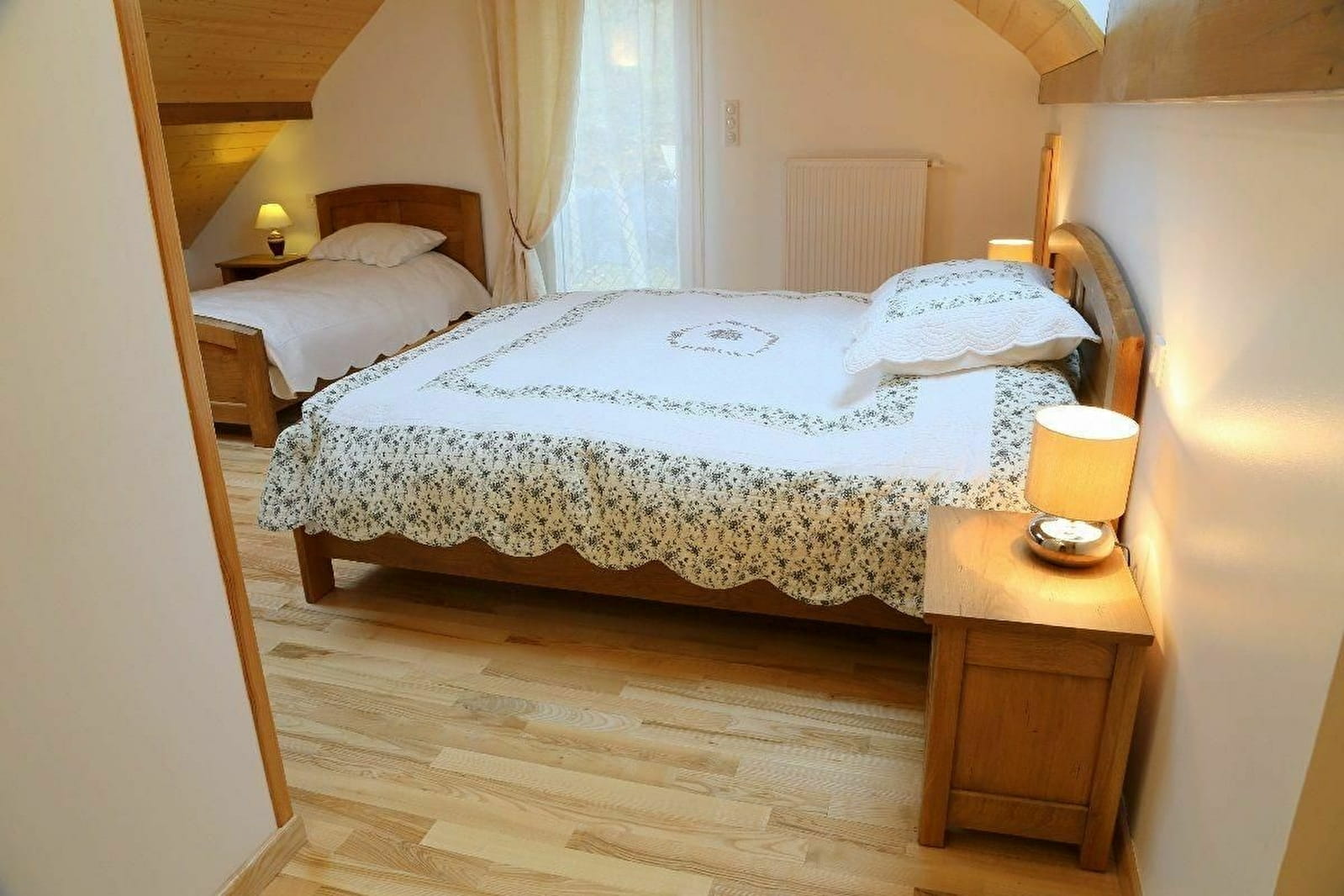 Situé à 5 minutes de Belfort dans un cadre champêtre, ce gîte douillet vous accueille en famille, entre amis, ou pour pour un séjour professionnel dans la région. D'une capacité de 6 personnes (3 chambres), il dispose de 2 parties indépendantes l'une de l'autre, possédant chacune des sanitaires. La partie ancienne, entièrement rénovée, se compose d'un couloir d'entrée donnant sur le salon salle à manger pour 6 personnes, la cuisine, les toilettes et la salle de bain (avec une grande douche). Un escalier étroit en bois permet de monter à l'étage pour accéder à 2 chambres indépendantes : la première comporte un lit double et un lit simple, et dispose d'un balcon, la deuxième comporte 2 lits simples. Enfin, la partie nouvelle du gîte est composée d'un grand escalier donnant accès à une salle de bain avec douche et toilettes, ainsi qu'à une troisième et grande chambre familiale composée d'un lit double, d'un lit simple, et comportant un grand dressing.