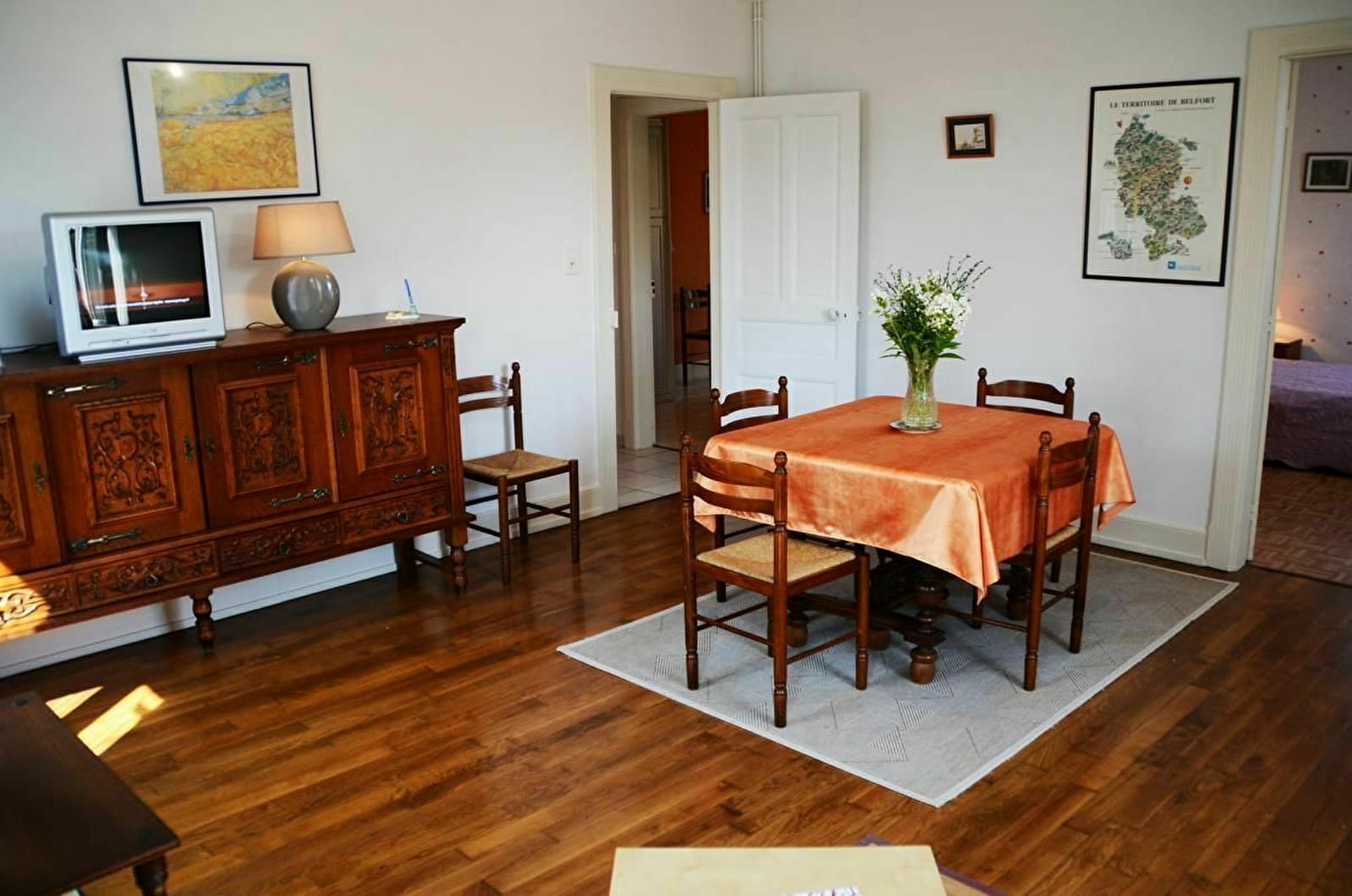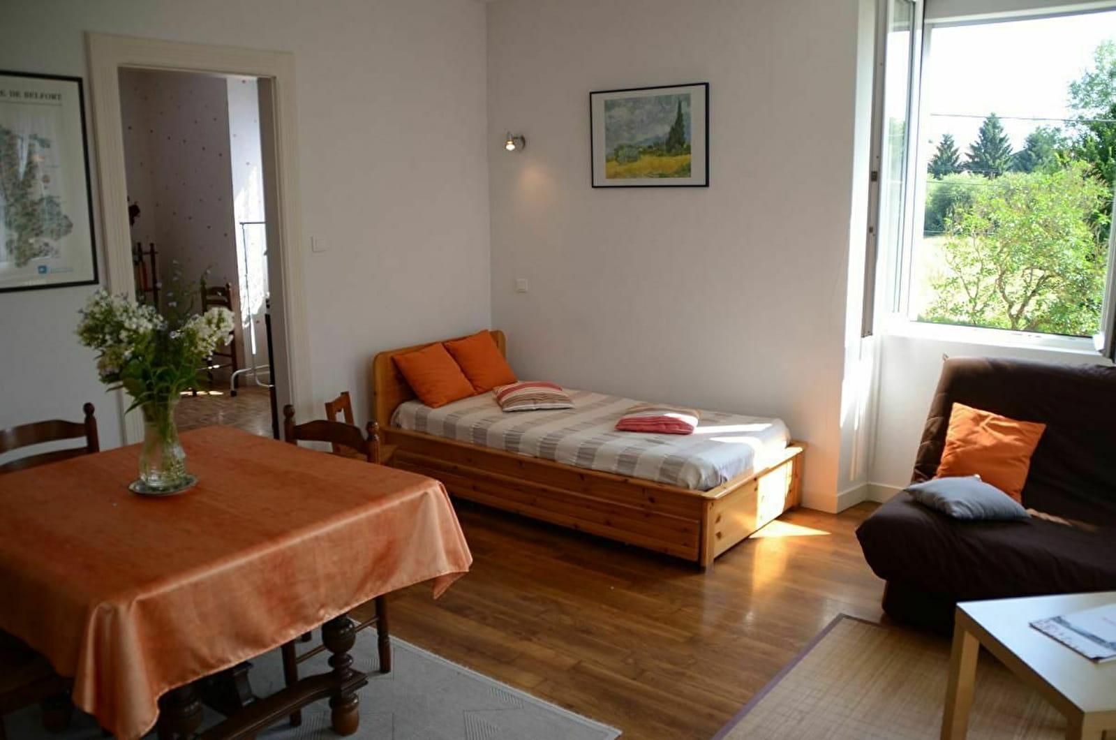 Situé dans un petit village à la campagne, aux portes de l'Alsace, de la Suisse et du massif des Vosges, facilement accessible (à 10mn sortie 11 de l'A36 et 10mn de la gare TGV Belfort/Montbéliard, à 1km de la vélo route Nantes-Budapest), le gîte les Prés Roy vous accueillera au rez-de-chaussée surélevé ( quelques marches d'escaliers ), dans un logement très lumineux d'une ancienne ferme. Entrée indépendante, une grande cuisine toute équipée, grand salon- séjour avec 2 lits gigognes de 90cm et un canapé clic clac.