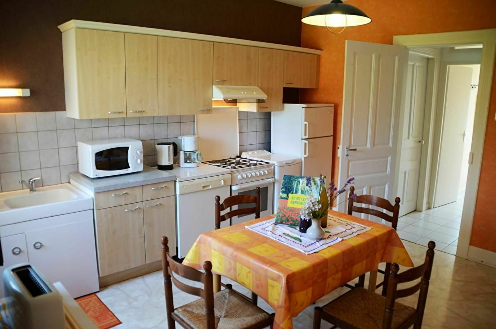Une chambre avec 1 lit 2 places 140cm et un lit bébé. Une salle d'eau avec une douche et un lavabo. Un WC indépendants .