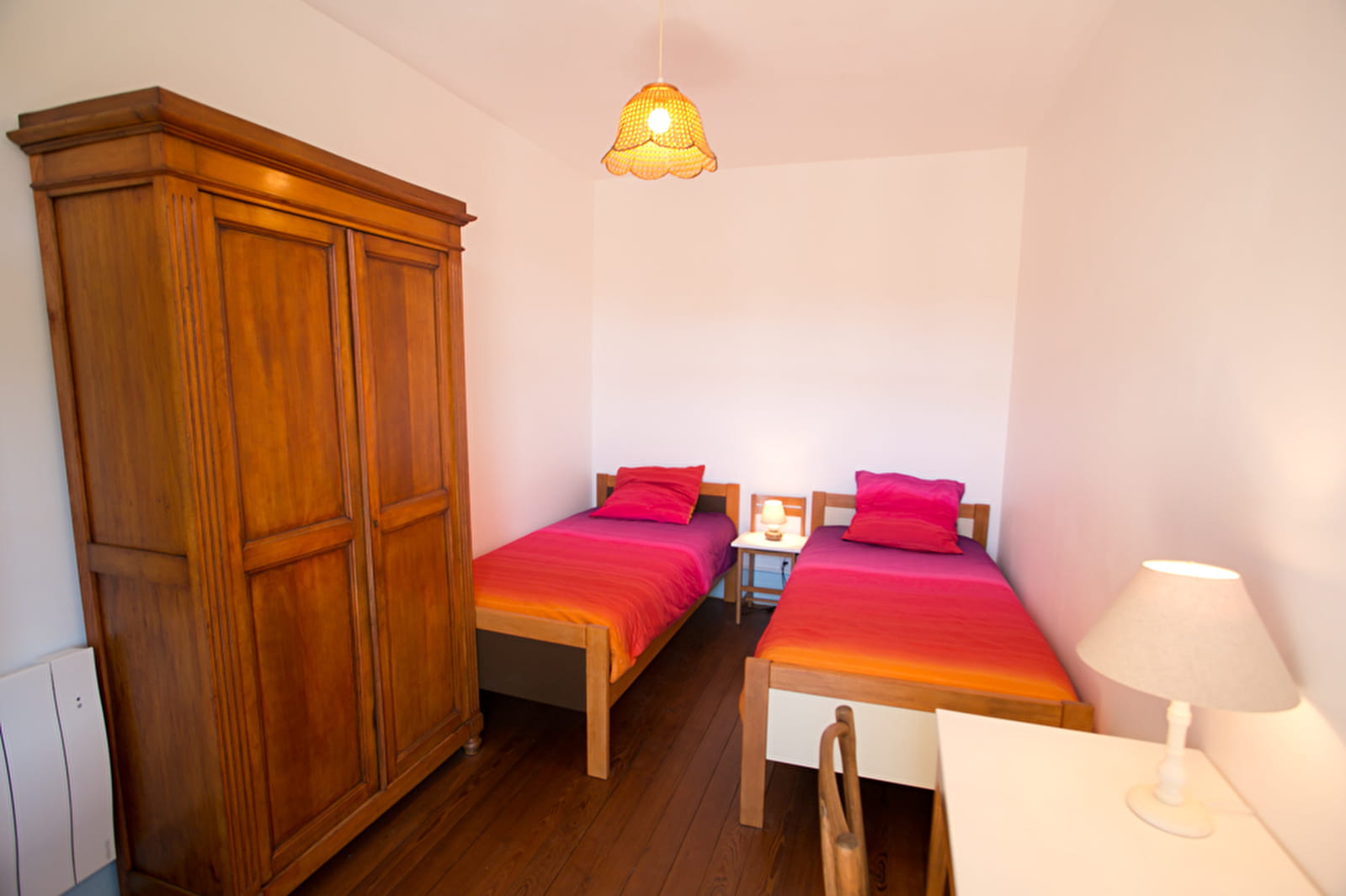 Une chambre est équipé de 2 lits simples 90 x 200 cm.
