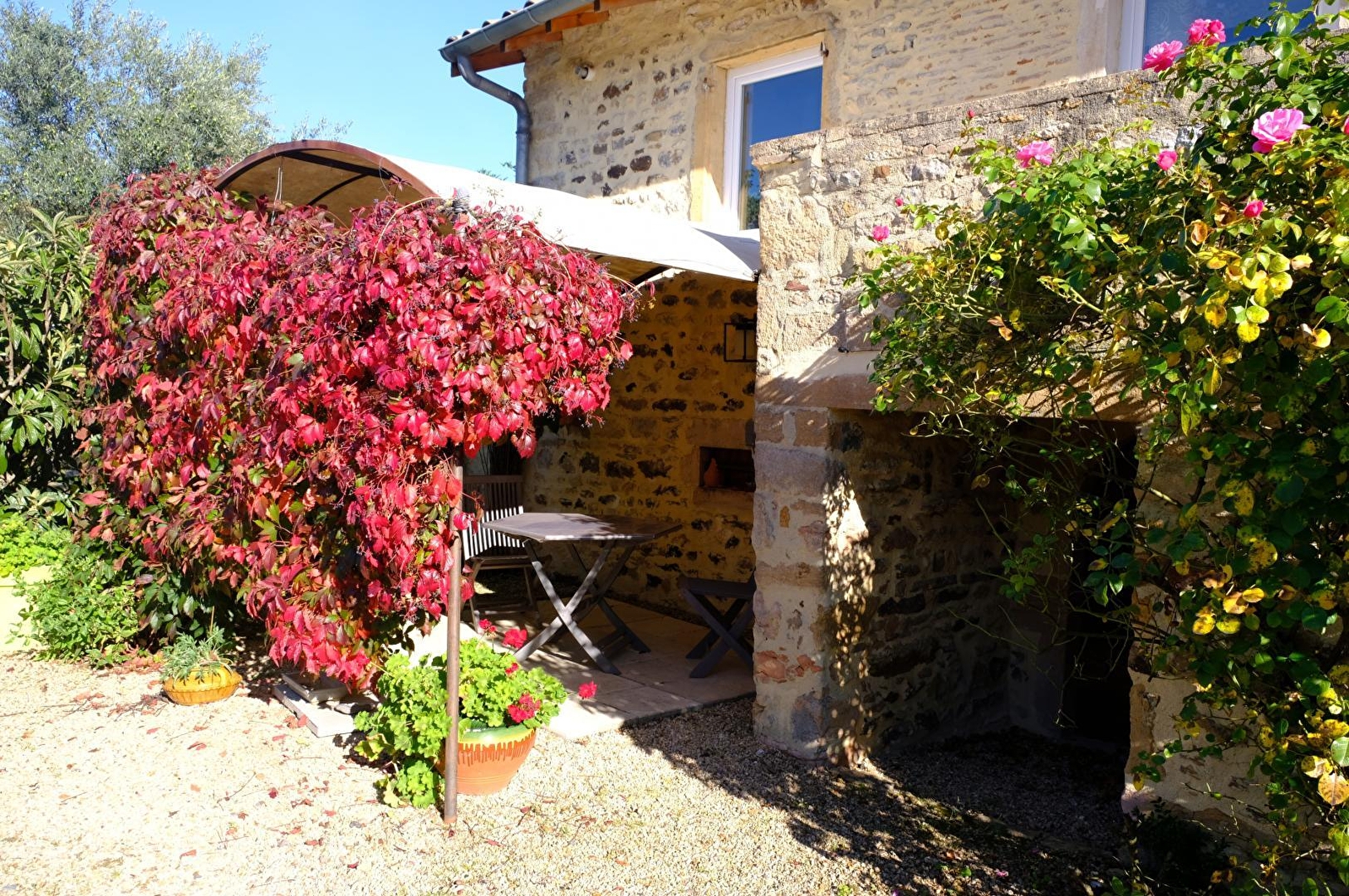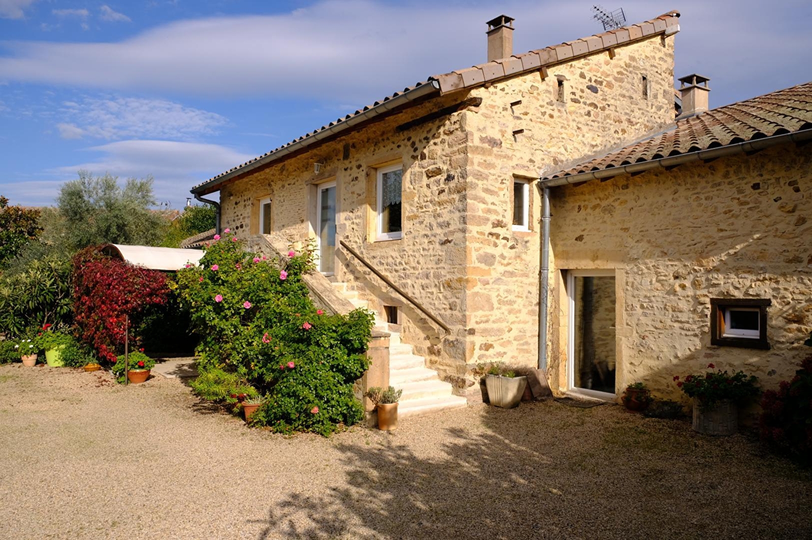 Authentique corps de ferme de caractère du 19ème siècle, restauré dans les règles de l'art & chargé d'histoire (ancienne domaine agricole & viticole), niché sur une charmante propriété close de 1800m² soignée & fleurie (portail électrique), proposant une belle piscine, un agréable espace jardin et une grande cour en gravier (véritable terrain de pétanque naturel). Environnement calme, au cœur même des vignobles de Chânes (cru Saint-Véran ultra réputé), au sein d'un paisible hameau résidentiel blotti à flanc de coteau dominant un petit vallon verdoyant (superbe panorama sur les environs dont le Mont-Blanc par temps clair !), à 2 km du charmant village de Chânes, l'une des plus petites communes de Saône-et-Loire, paisible bourg viticole typique riche d'un patrimoine notable (élégante église romane du XIe siècle classée, belles demeures bourguignonnes historiques, château du XVIIe...). En pleine campagne mâconnaise, au creux d'un superbe cadre paysagé, magique & enchanteur, successions de vastes coteaux de vignes, bucoliques rivières & collines boisées. Gîte de très bon confort. Chaleureux cachet campagnard sublimé par une élégante restauration patrimoniale (conservation des anciens murs en pierres, linteaux de fenêtres en pierres, plafonds & poutres d'origine, majestueux manteau de cheminée sculpté…). Ambiance cocooning et ultra cosy. Énormément de charme. Agréable terrasse privative abritée & ombragée.