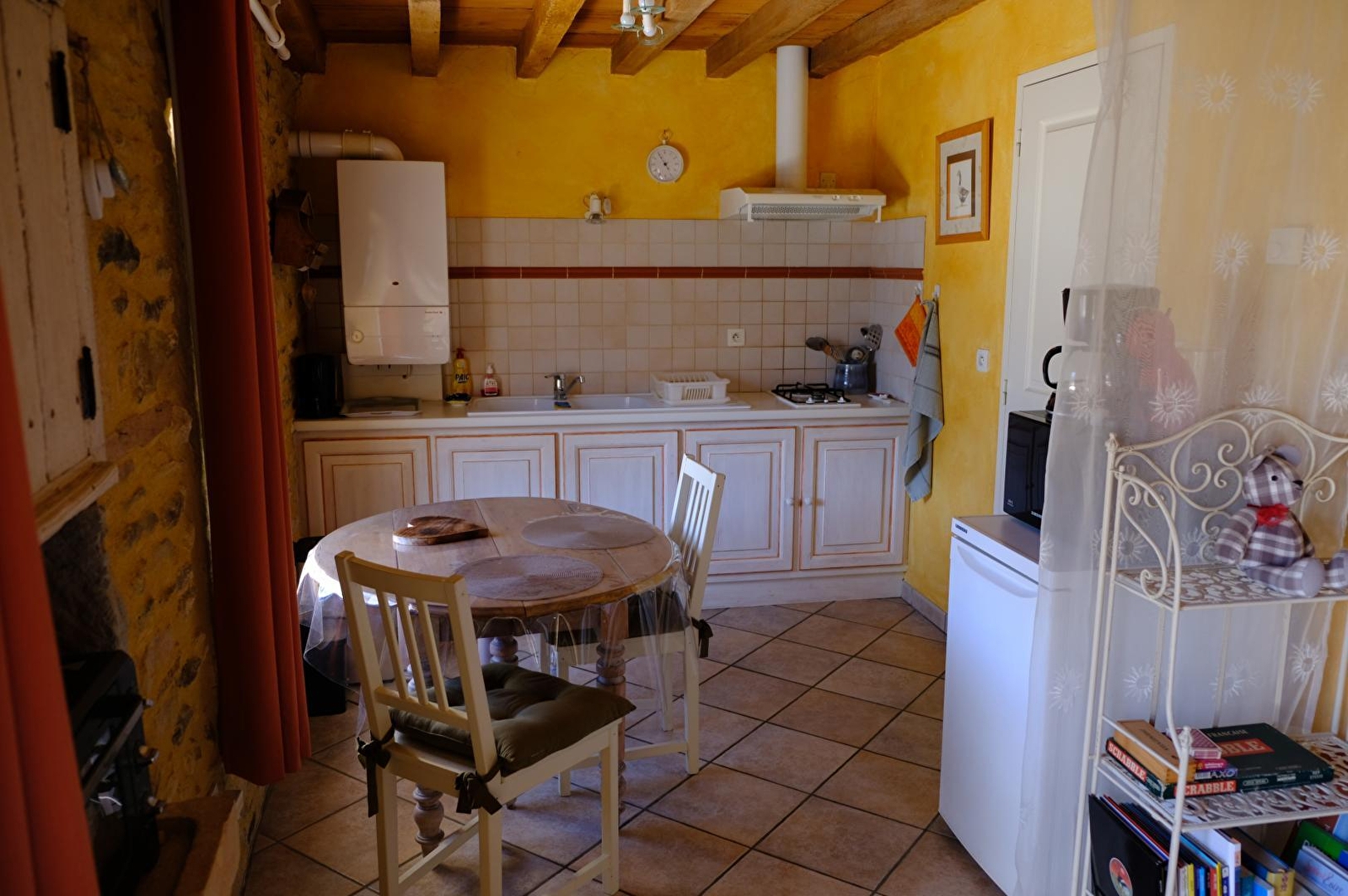 Composition : Maison mitoyenne (à second gîte) jouxtant l'habitation des propriétaires (indépendance totale). Wifi (fibre). Chauffage central gaz. Buanderie commune (lave-linge en commun avec autre gîte). Gîte de type studio au 1er étage (lit 2 p. 140x190cm), salle de bain (baignoire), Wc indépendant. Terrasse privée. Terrain clos en commun (1800m²). Piscine en commun avec autre gîte et propriétaires de mai à septembre (9.5x4.5m ). Local vélos/motos fermé. Parking privé. Gîte labellisé "Accueil Motards" (classé 2 casques). Non fumeurs. Tous commerces 4.5 km. Gare 7 km.