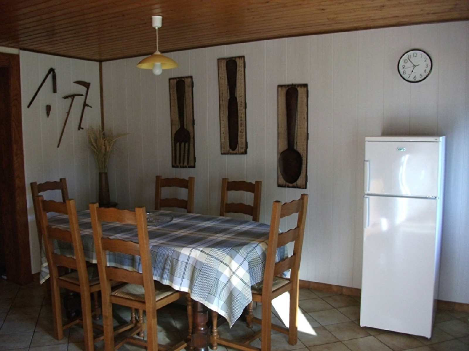 Son aménagement respecte le caractère typique de l’Ancienne Ferme. Le garage attenant permet de ranger le matériel de pêche, les VTT ou autres équipements de loisir. La proximité de l’étang, du jardin avec les petits fruits, vous assurent le dépaysement souhaité. La nature est à coté de chez vous.