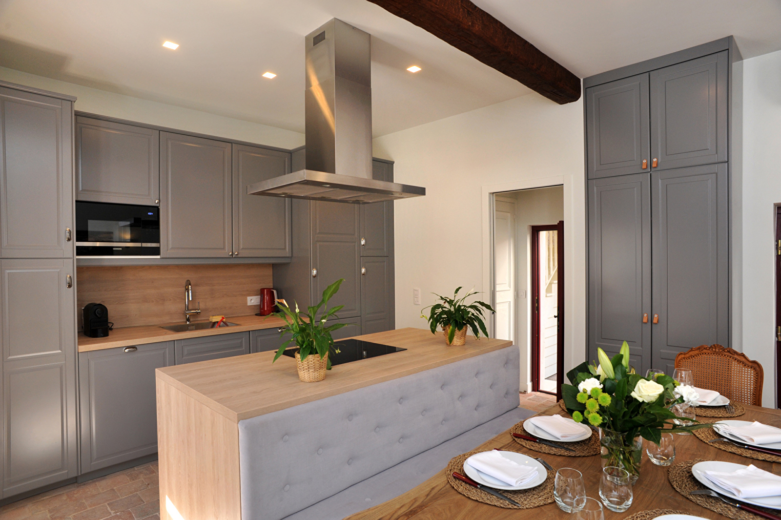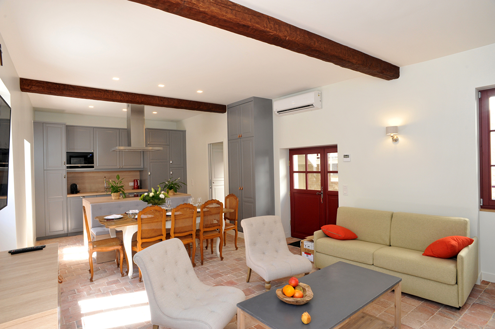 En séjournant aux Sarments, vous bénéficierez de quatre chambres doubles et quatre salle de bains en-suite à la décoration particulièrement soignée et aux prestations de qualité (literie d'hôtel 5*, linge de lit et de toilette de luxe, produits d'accueil VIP, baignoires balnéo et douches multi-jets, WC privatifs, climatisation, connexion wifi, coffre-fort). Vous trouverez également sur place une cuisine entièrement équipée, un salon confortable avec télévision, un cellier dédié à la détente avec coin bar et billard américain, ainsi qu'un charmant patio agrémenté d'un barbecue électrique.