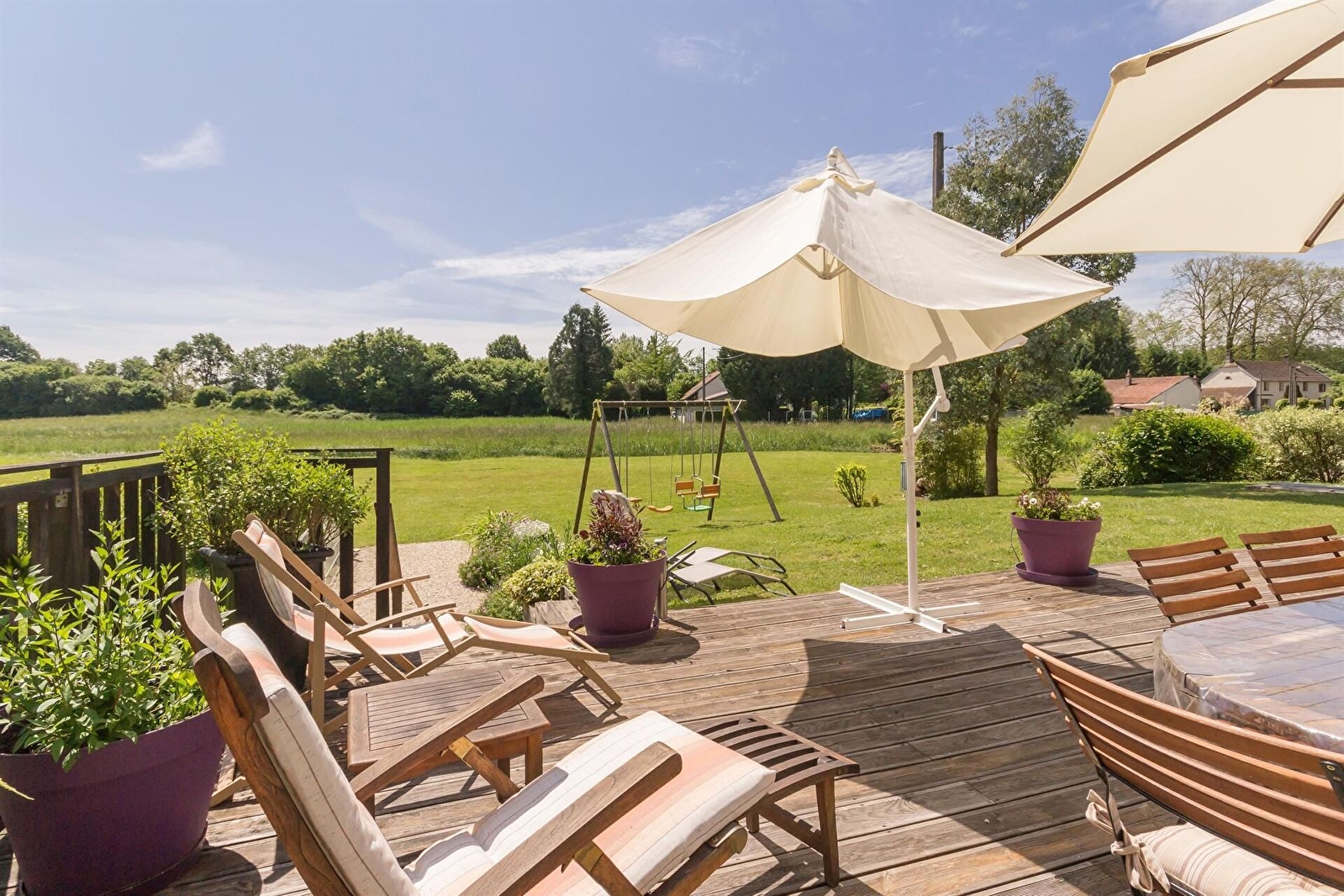 Dans un agréable village en bord de Saône, maison récente, indépendante et de plain-pied à l'accès facile, exposée plein-sud avec de grandes baies vitrées donnant sur un jardin sans vis-à-vis.