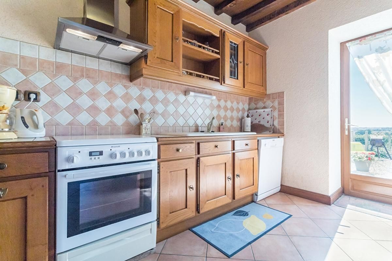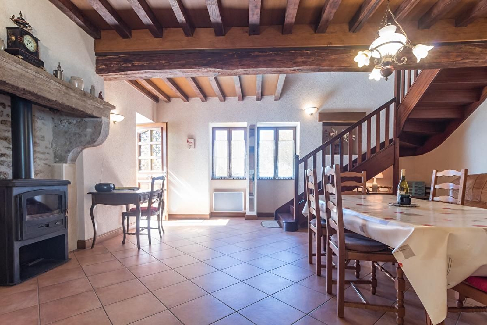 Dans un petit hameau, maison indépendante sur 2 niveaux, mitoyenne par un garage.