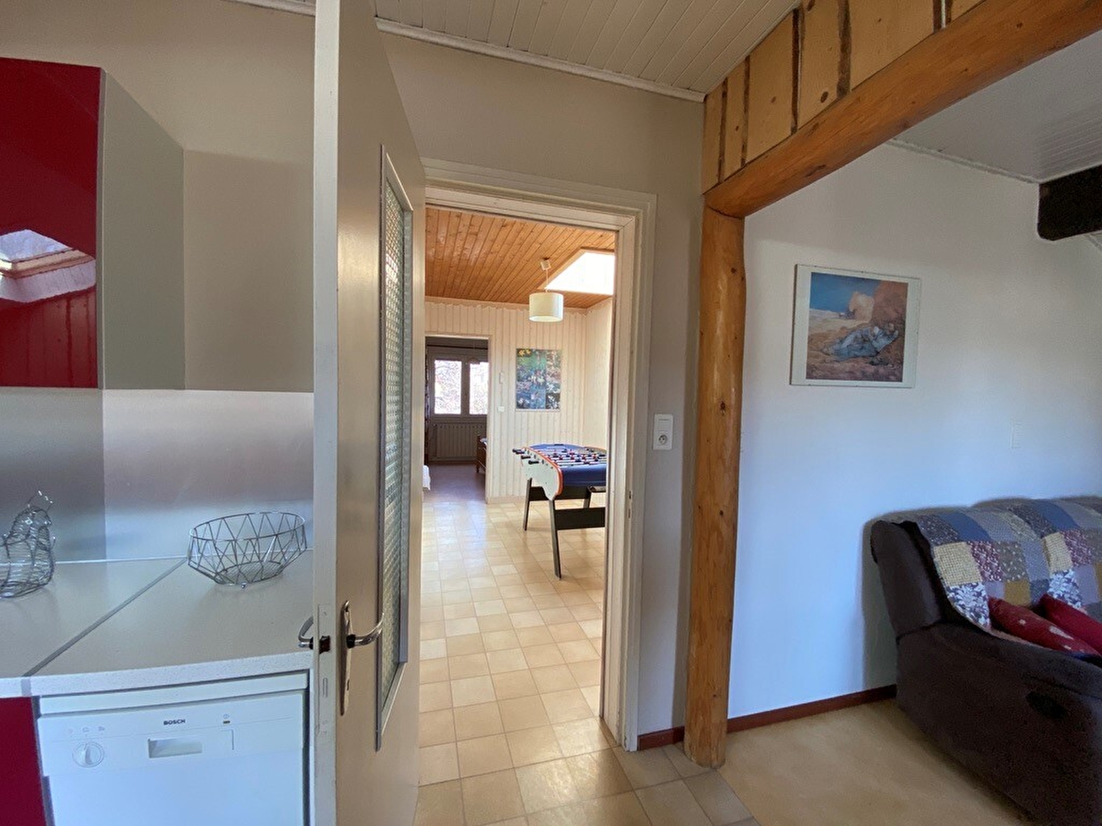 Idéalement situé a proximité des pistes de ski du Haut-Jura ainsi que de la région des Lacs et des cascades, joli logement à l'étage de la maison des propriétaires (abritant également un autre gite pour 2 pers au rez de chaussé (chaque logement a une entrée indépendante et ils ne sont pas au même niveau). Cuisine intégrée entièrement équipée, confortable salon avec TV écran plat et lecteur DVD, salle d'eau avec grande cabine de douche, 1 première chambre avec 1 lit 2 personnes , puis en enfilade une petite chambre avec 1 lit 1 place. Une autre chambre avec 1 lit 2 personnes et 1 lit 1 personne. Terrain attenant clos équipé de salon de jardin, chaises longues et barbecue. Cour. Service à raclette et à fondue, wok. Chauffage central. Potager sur table (salade et plantes aromatiques), équipement bébé complet, raquettes à neige et bâtons de randonnée à disposition. Wifi gratuit. Terrain de pétanque. Produits de base (sel, poivre, huile, farine et sucre) produits d'entretiens, éponges et papier toilette fournis.