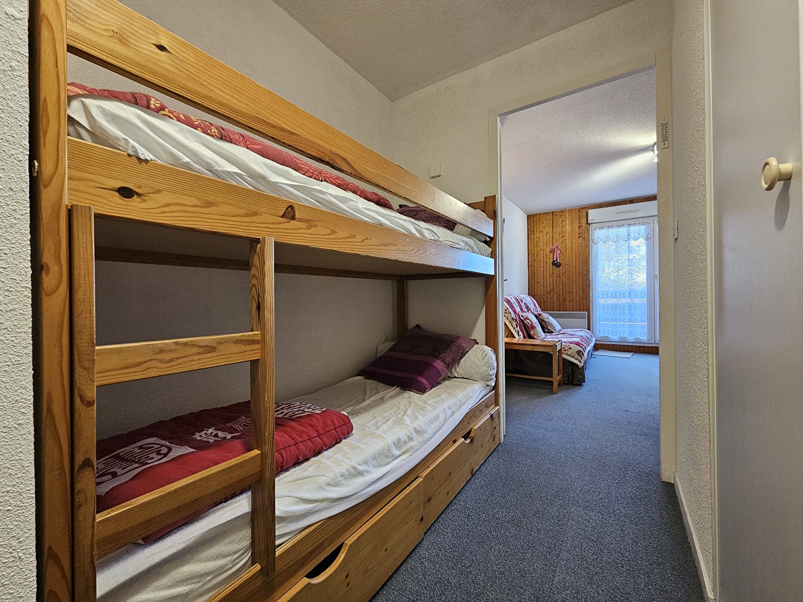 Situé dans la résidence "Les Tavaillons", l’appartement de 30m² au rez-de-chaussée est composé d’une entrée avec lits superposés de 90cm, d'une pièce principale avec coin cuisine/repas et canapé lit, une petite chambre avec lit mural de 140cm. Salle de bain et WC indépendants. Un accès extérieur sur petit balcon complète le tout. Stationnement privé sur parking extérieur.