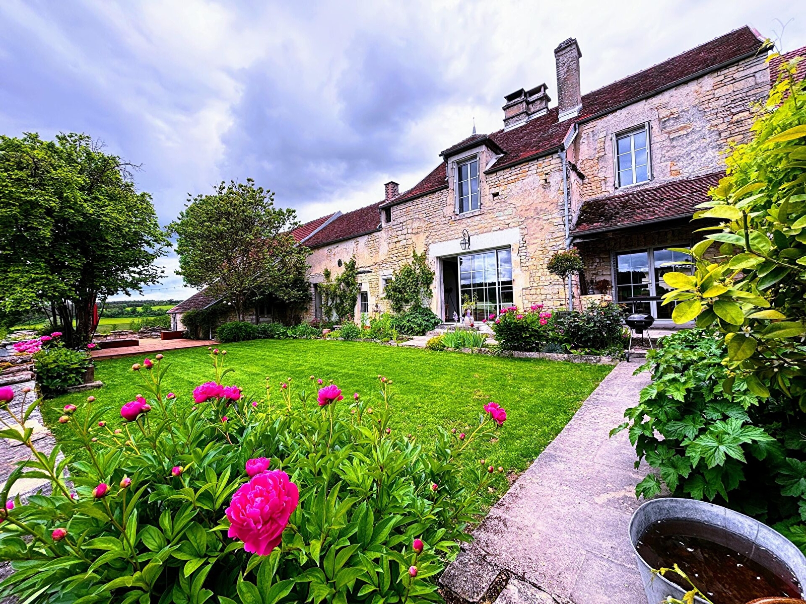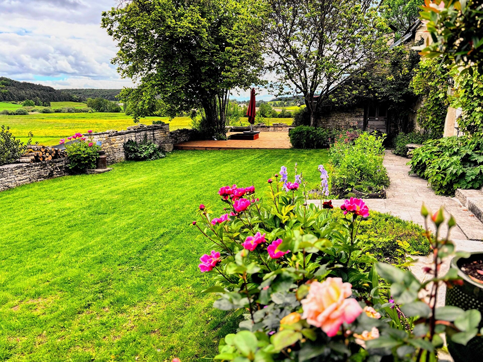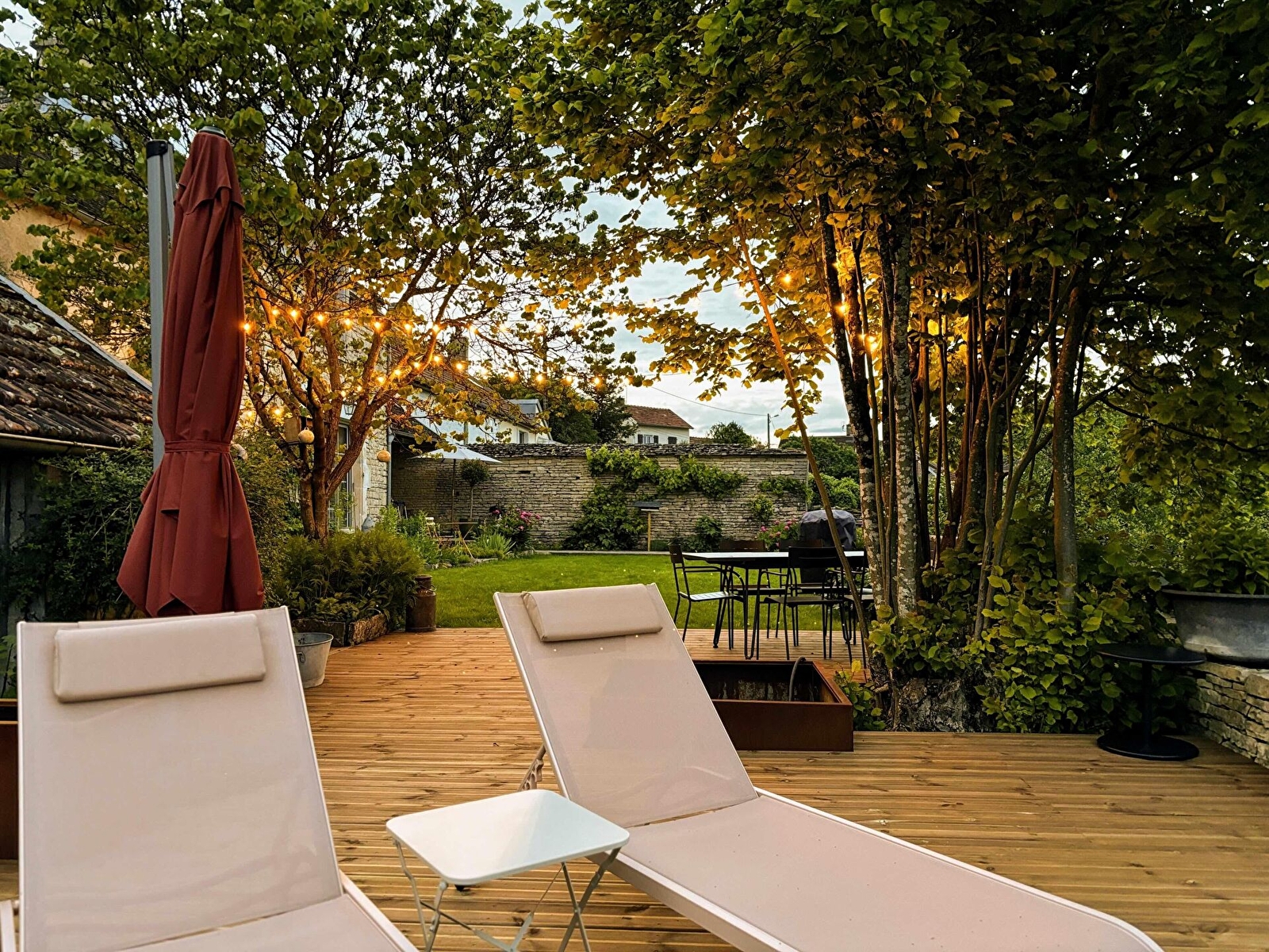 Le jardin, sur plusieurs paliers, est un lieu unique de par son cadre verdoyant et vallonné. Salon de jardin, barbecue. Le petit plus : un terrain de pétanque verra prochainement le jour !