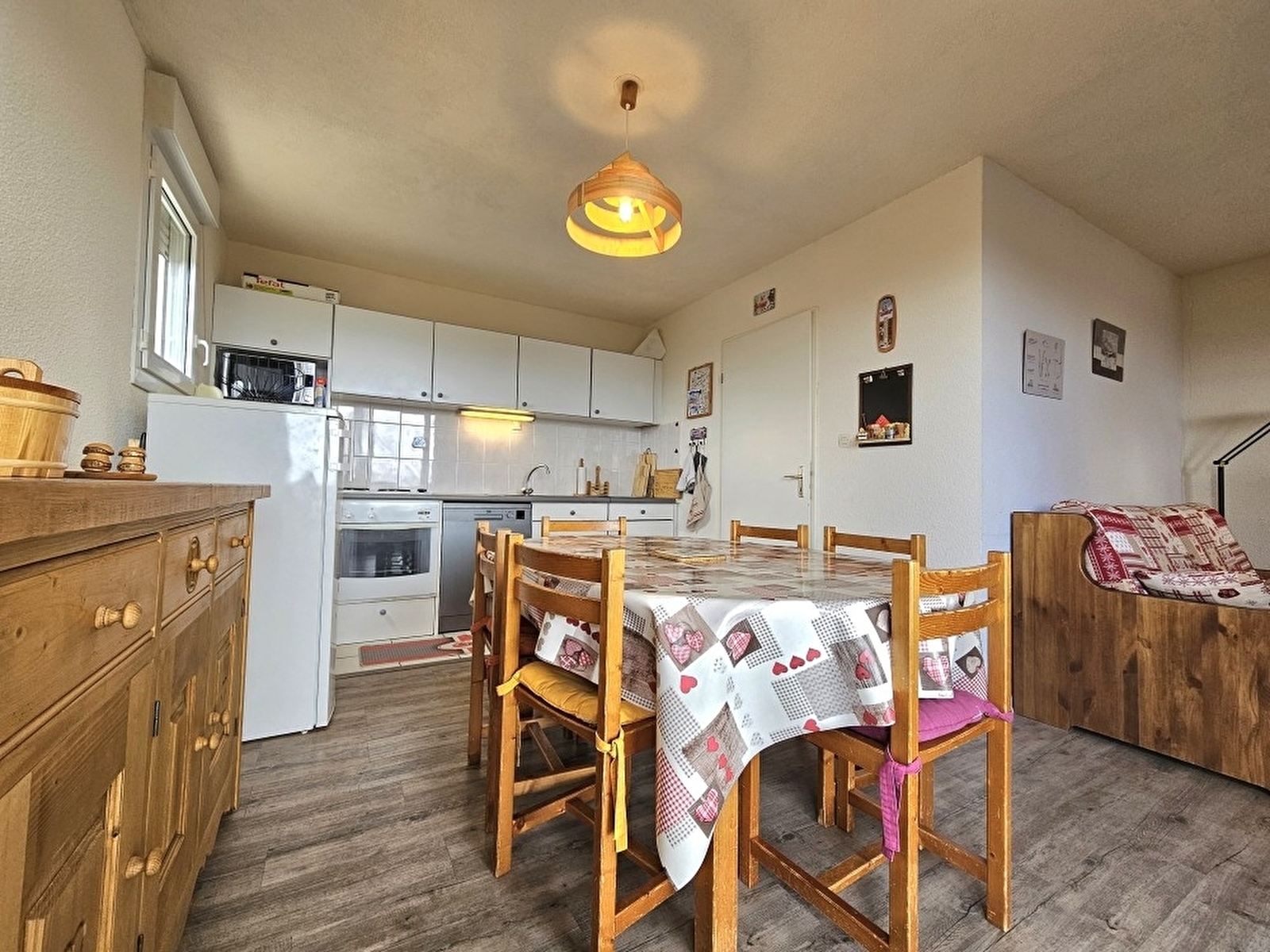 Situé dans la résidence "Les terrasses des jouvencelles" au 3éme étage cet appartement de 68m2 est composé d'une entrée, d'une pièce principale avec coin repas et cuisine et d'un coin salon avec canapé convertible en 140cm.