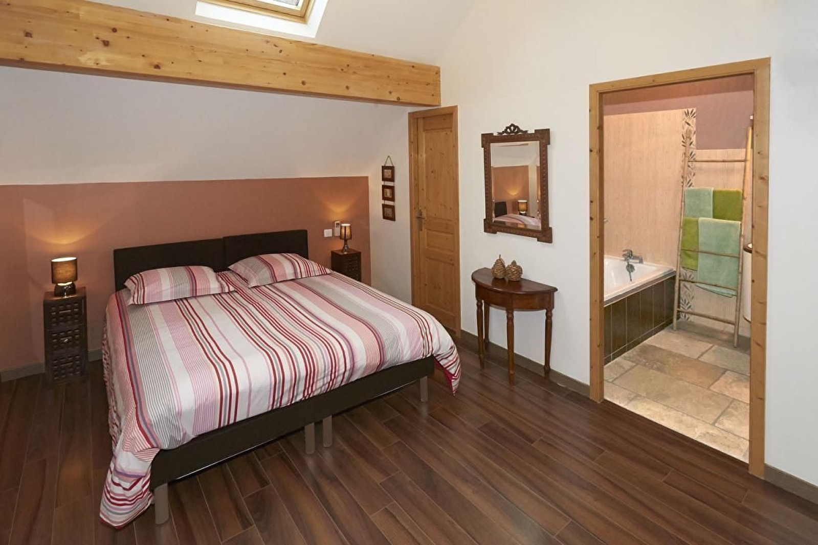 Le rez-de-chaussée du gîte comprend une cuisine équipée, un salon/salle à manger. 2 chambres avec 2 lits électriques médicalisés (180x200) et une salle d'eau avec douche à l'italienne et WC.