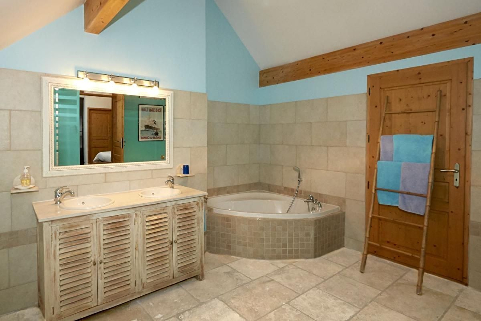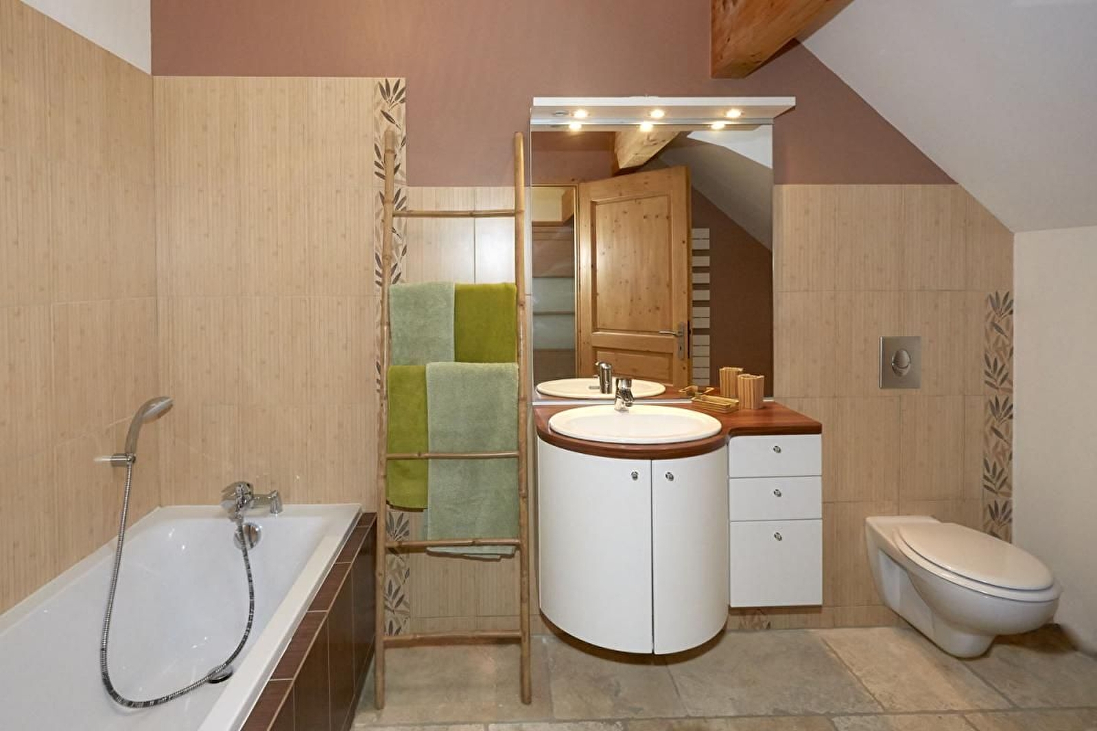 A l'étage, un salon avec bibliothèque et 2 chambres avec 2 lits jumelables 80x200 chacune, 2 salles de bains avec douche ou baignoire et WC. Équipement bébé à disposition : lit parapluie, chaise haute, table à langer.