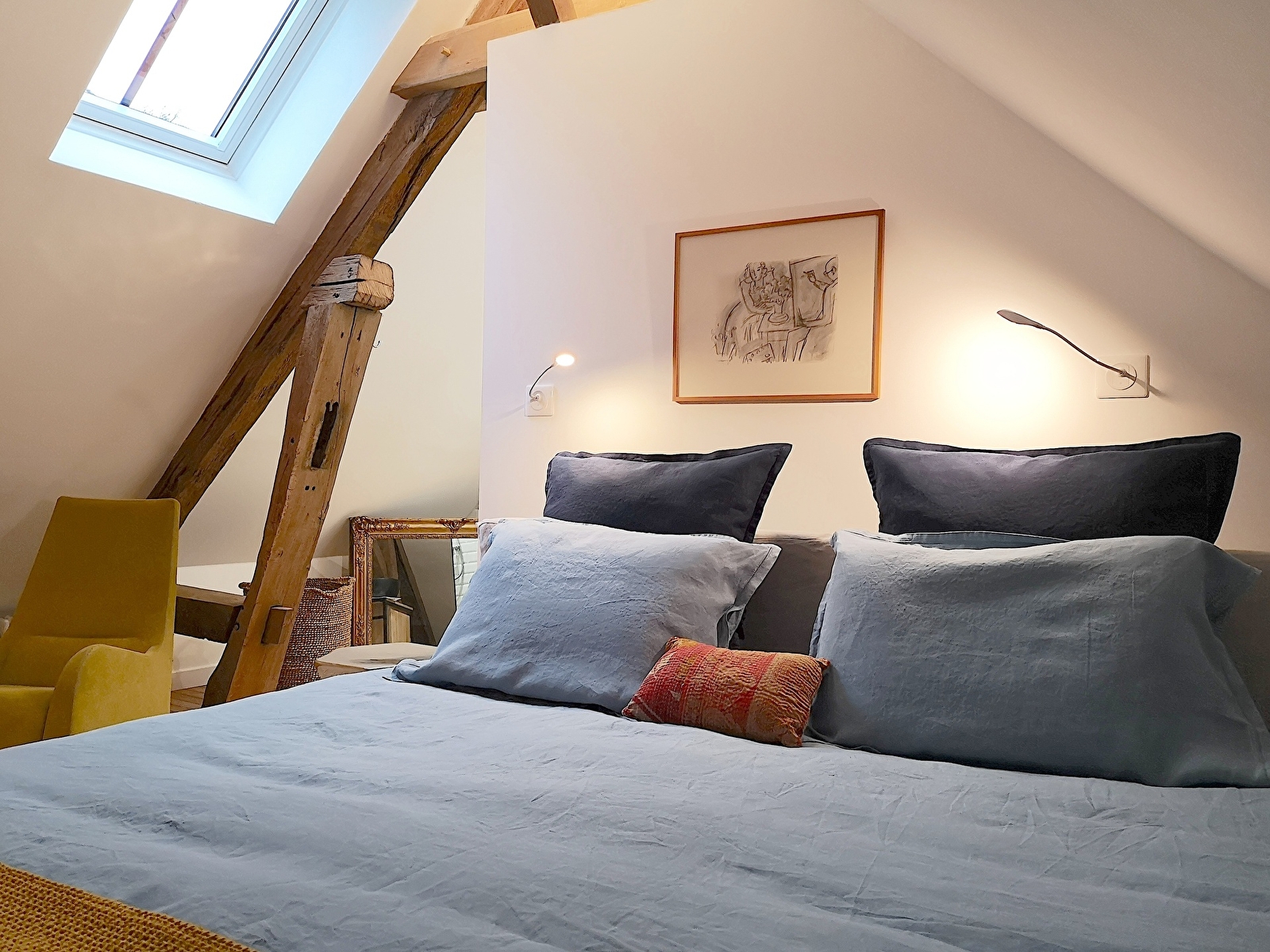 La maison d'invités des Tillets, peut accueillir jusqu'à 5 personnes (capacité de 2 chambres + 1 lit d'appoint) avec 1 salon cathédrale et une grande cuisine équipée.