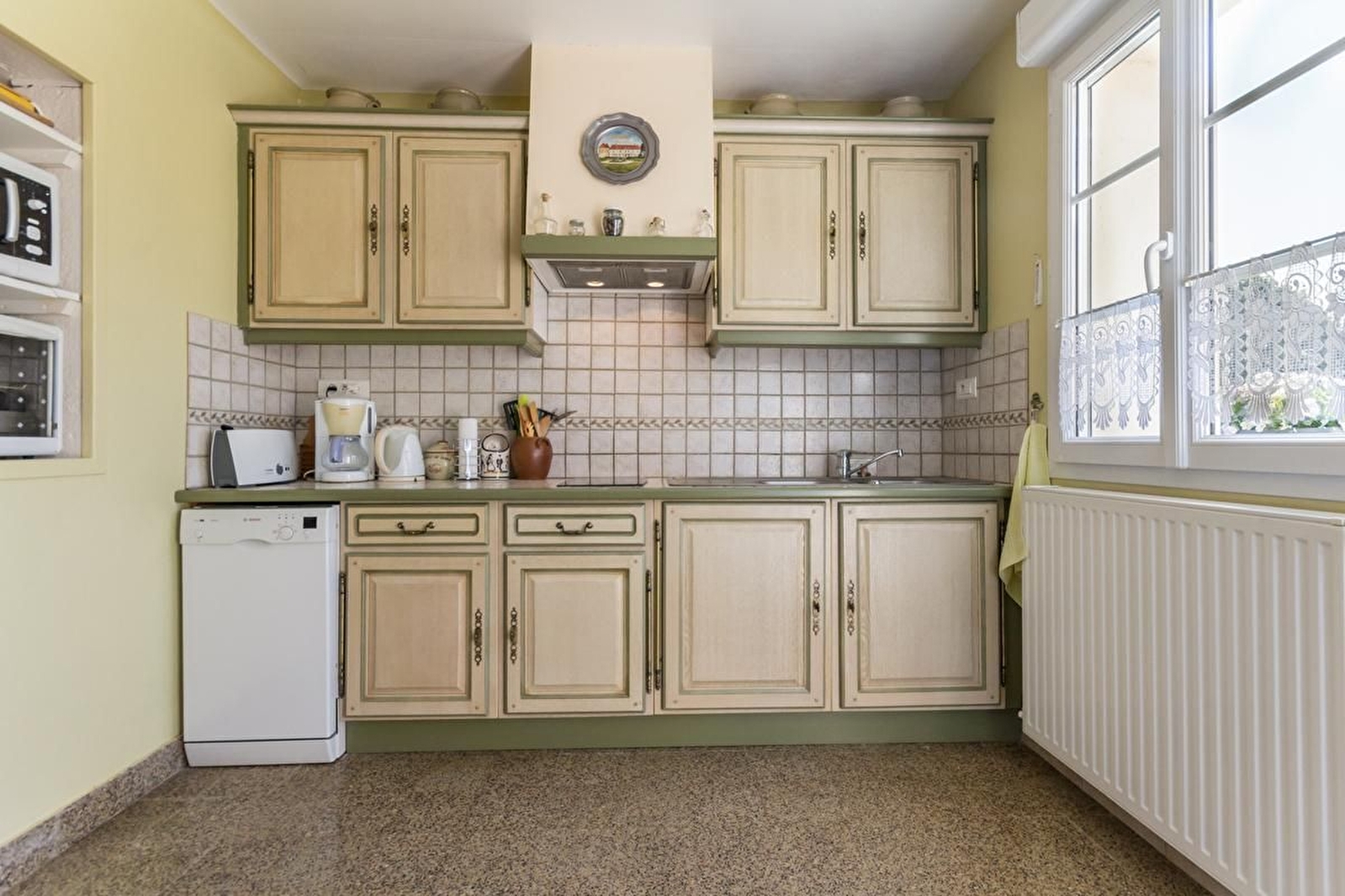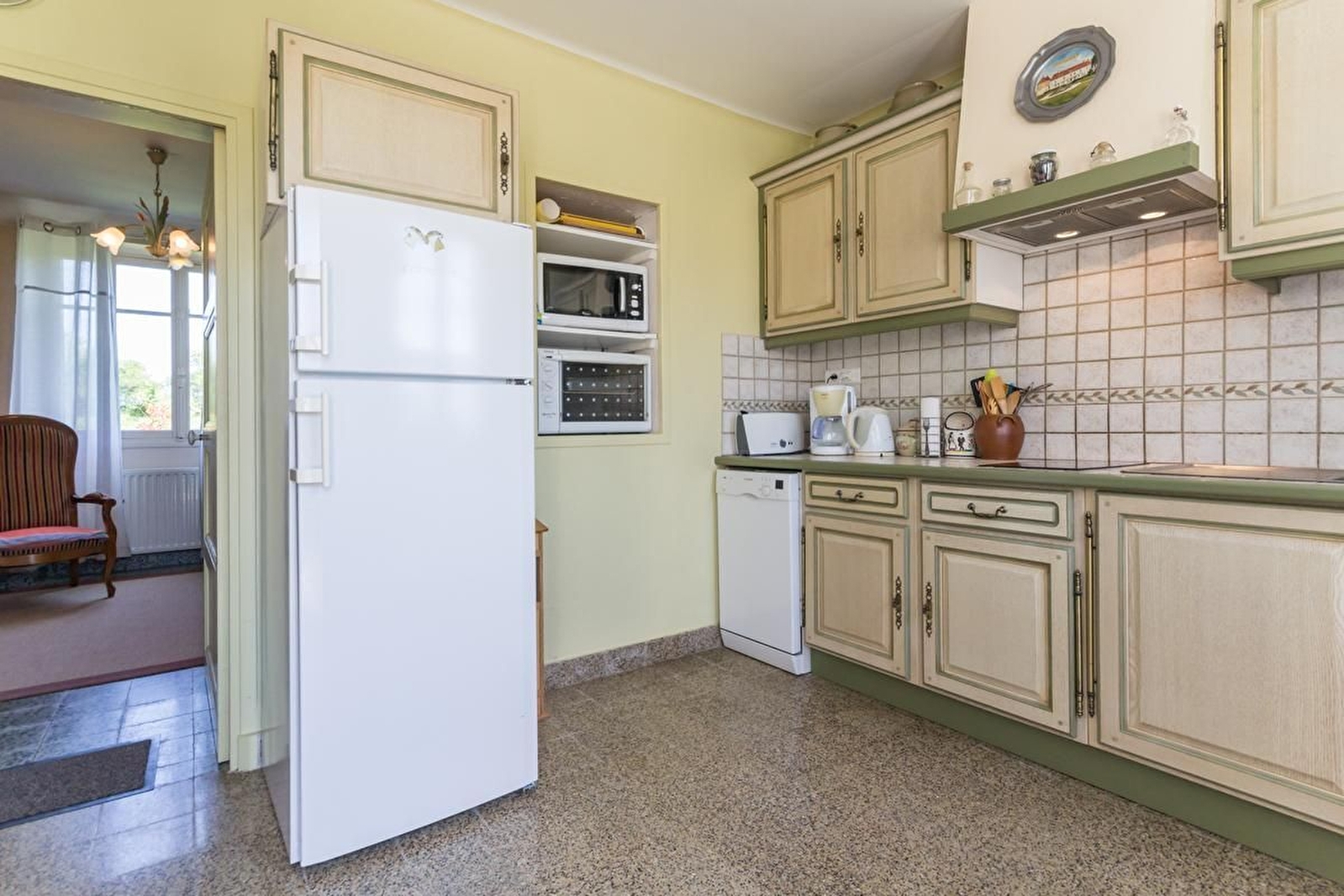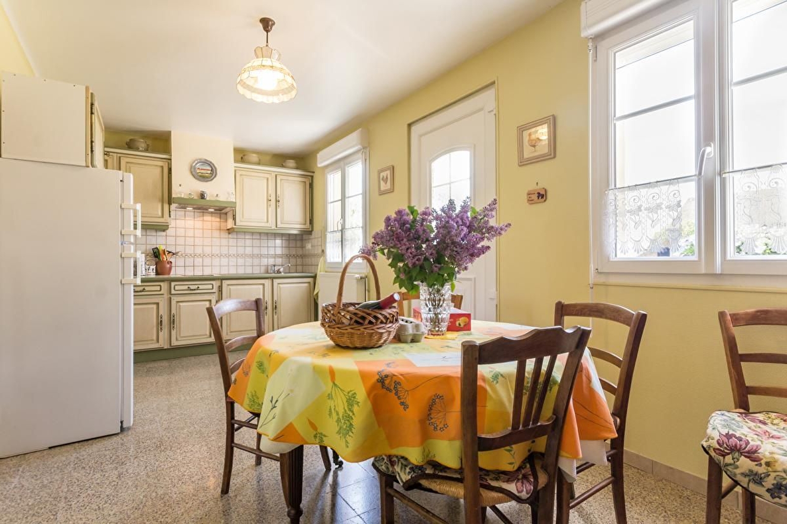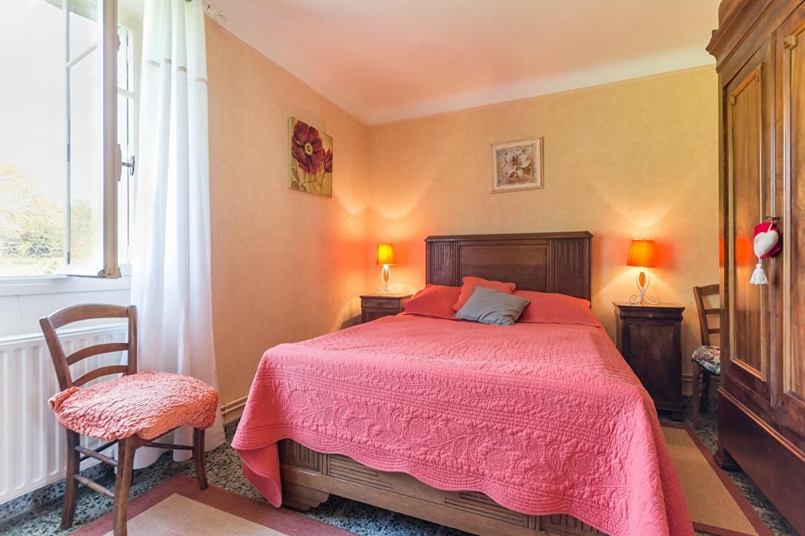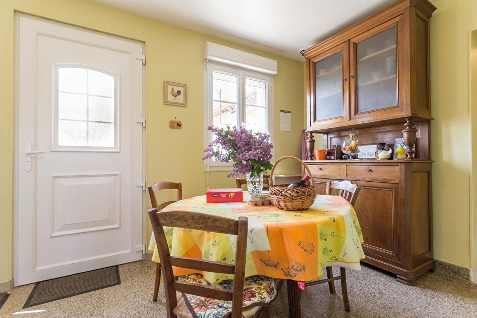 En plein milieu des champs, cette ferme abrite l'habitation des propriétaires, agriculteurs à la retraite, et le gîte de plain-pied en mitoyenneté.