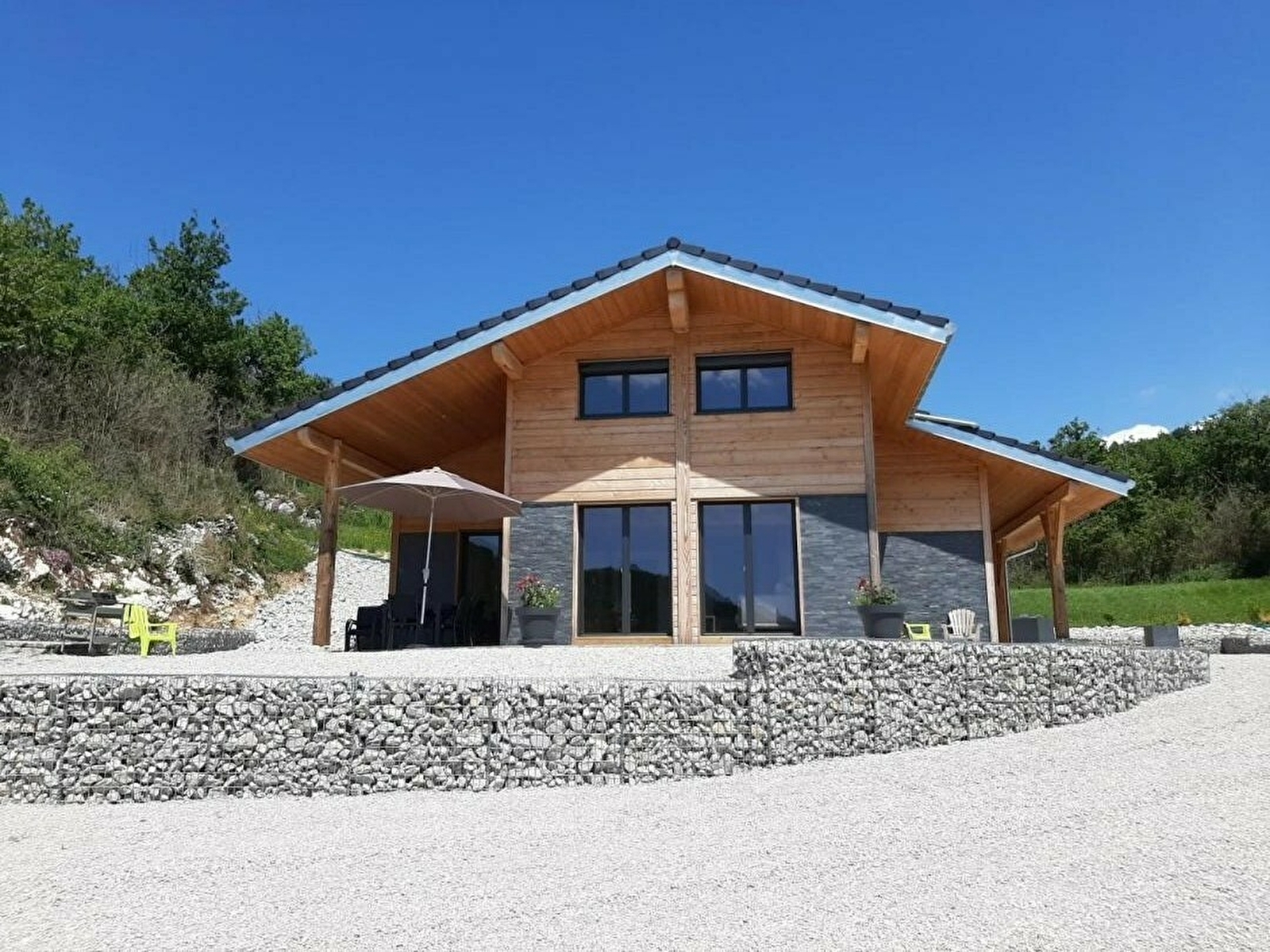 Situé dans le Haut Jura et à quelques encablures du lac de Coiselet, ce chalet entièrement neuf saura vous séduire par sa décoration cosy et épurée. C'est l'endroit idéal pour passer d'agréables moments entre amis ou en famille. Au rez-de-chaussée, grande pièce à vivre avec cuisine équipée, et séjour avec poêle à granulés, canapés et TV écran plat. Une chambre parentale avec 1 lit en 160 et salle d'eau avec douche à l'italienne, buanderie avec machine à laver et WC indépendant. A l'étage, une chambre avec 2 lits en 160 et une autre chambre avec 2 lits simples et 1 lit en 160, salle d'eau avec douche à l'italienne et WC. Côté extérieur, vous pourrez profiterez d'une belle terrasse avec salon de jardin et barbecue. Note : climatisation uniquement dans la pièce de jour
