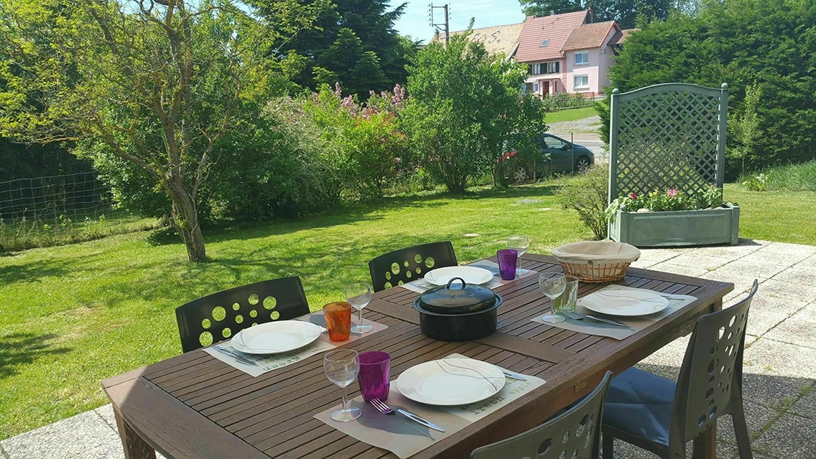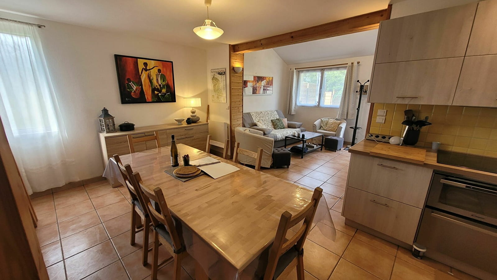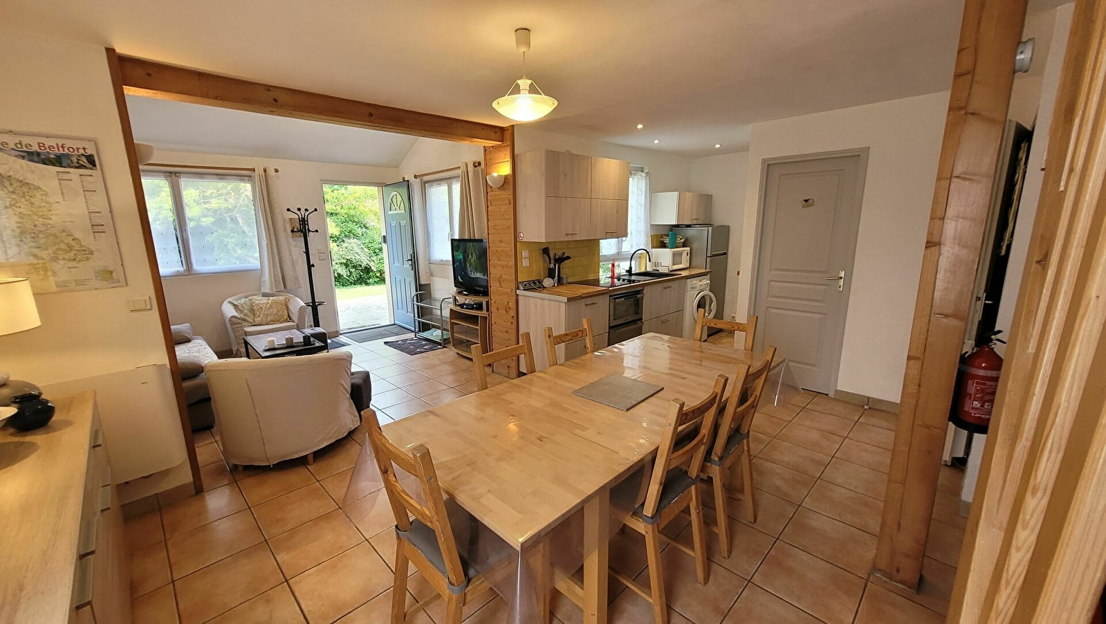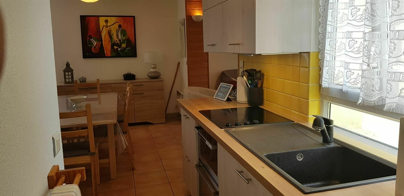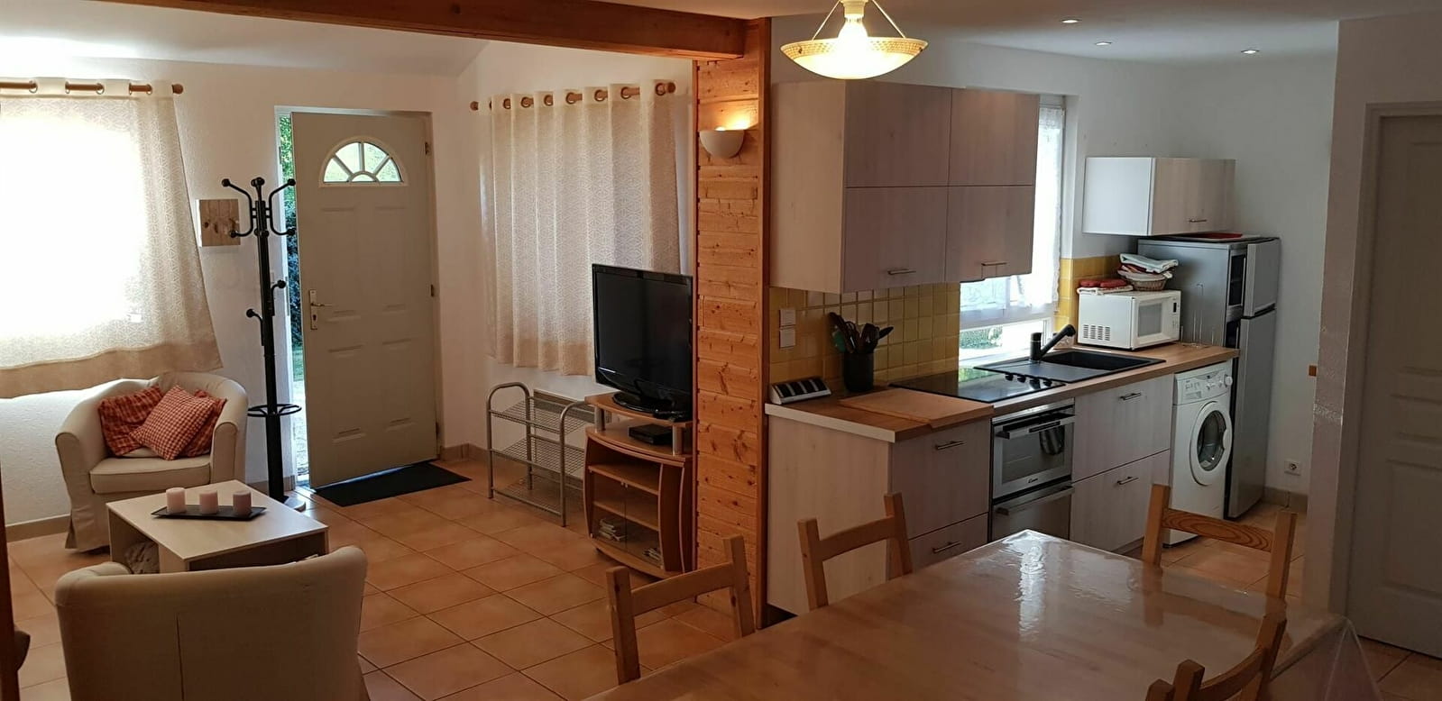 Gîte mitoyen à la maison du propriétaire. Rez-de-chaussée: salon, accès Internet WI-FI, salle avec coin cuisine, entièrement équipée, salle de bains, WC séparé. Premier étage: deux chambres climatisées, une chambre avec un lit deux personnes (160x200) et une chambre avec deux lits une personne (90x190). Terrasse, jardin attenant, parking privé. Jardin privatif clos.