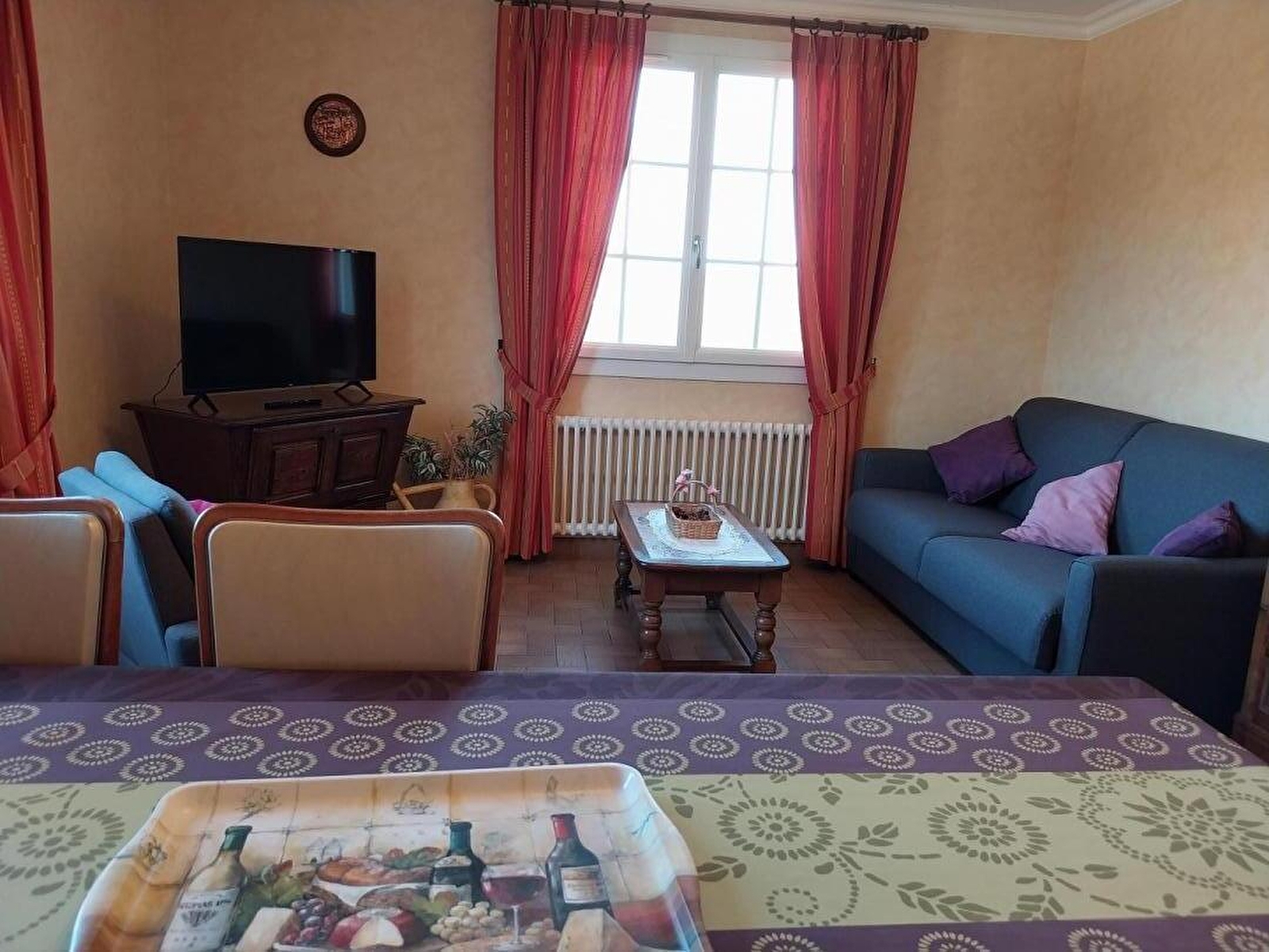 Composition : Maison mitoyenne à l’habitation du fils des propriétaires (comprenant le caveau de dégustation du domaine au rdc). Wifi. Chauffage central fioul. Gîte au 1er étage : cuisine, séjour-salon, 3 chambres (2 lits 1 p. 90x190cm / lit 2 p. 140x190cm / 2 lits 1 p. 90x190cm). Salle d’eau (douche), Wc indépendant. Balcon-terrasse (en partie abrité) + terrasse sur cour + jardin + terrain de pétanque + garage (1 voiture) + local vélos + parking privatifs. Terrain clos 350m². Supermarché 7.5 m. Gare TGV 14 km.