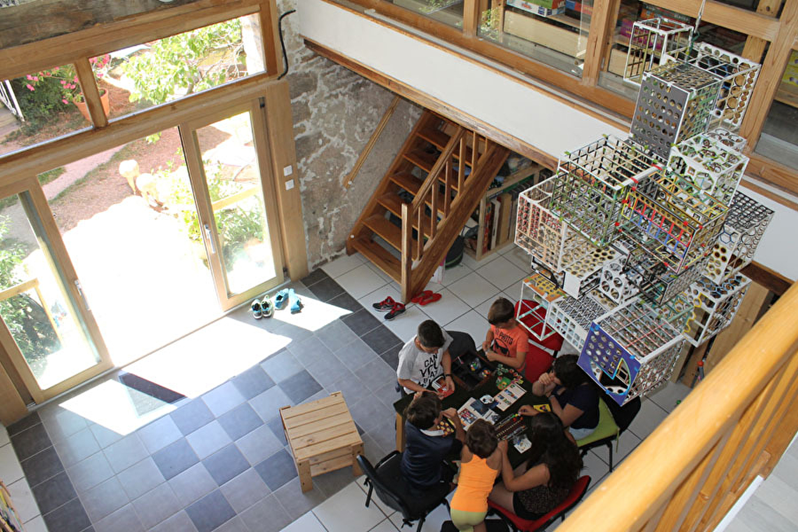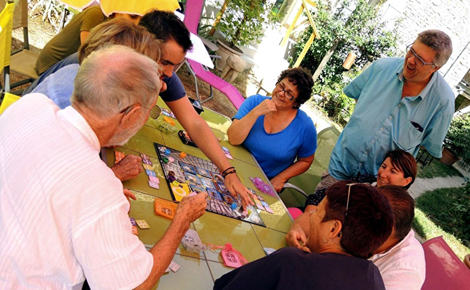 La ludothèque, d'une superficie de 152 m², propose en libre utilisation plus de 9500 jeux, un coin salon/bar, ainsi que des tables et des chaises confortables. Le gîte et la ludothèque donnent sur un agréable jardin avec vue sur les vignes et forêts avoisinantes.