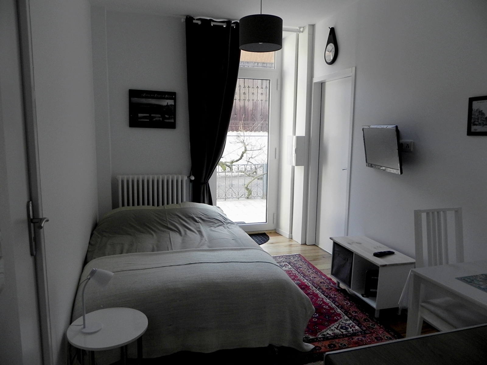 Appartement avec terrasse, idéal pour un séjour urbain en famille ou entre amis situé dans une maison de maître accessible par cour intérieure.
