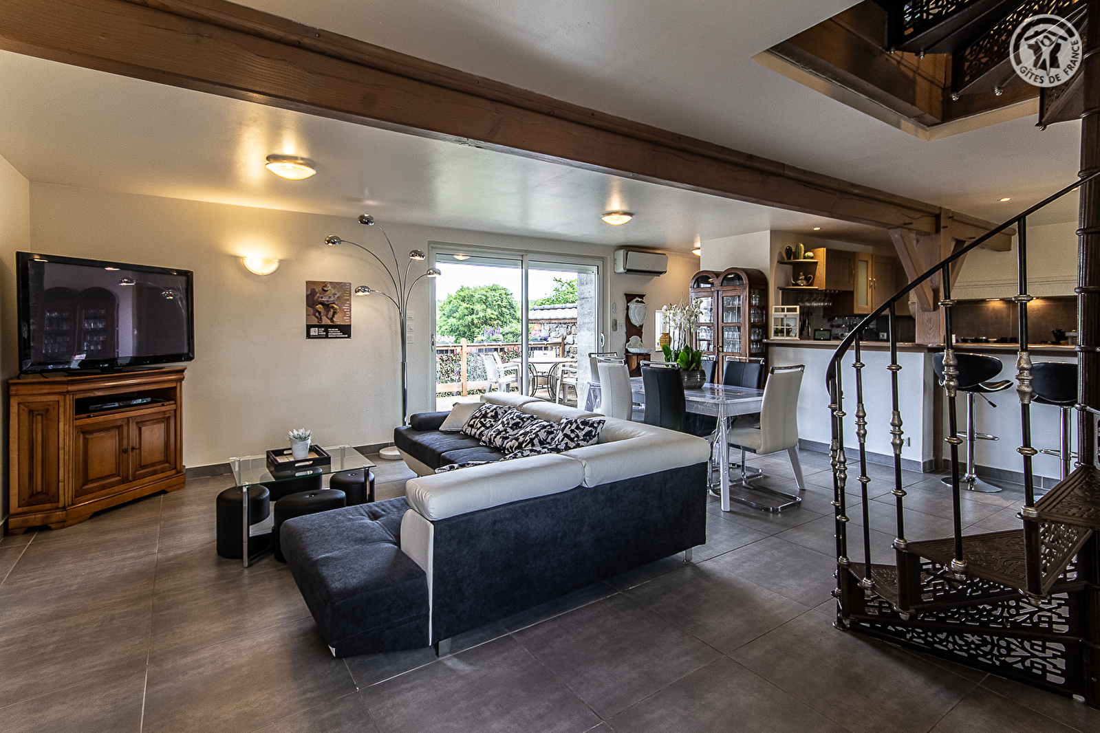 Jacques-Olivier et sa compagne Pascale vous accueillent au sein d'une ravissante maison de pays du 19ème siècle intégralement restaurée sur une propriété close qu'il a lui-même aménagée avec soins. Au sein d'un paisible hameau résidentiel jouxtant le petit village typique de Pouilloux à 4.5 km du bourg commerçant de St-Vallier (toutes commodités). Au cœur du célèbre bocage charolais, en pleine campagne montcellienne, au creux d'un charmant cadre bucolique préservé de prairies et forêts longeant le canal du centre & le tracé de l'EuroVélo6 connecté à la voie verte (« Le Fleuve tranquille" serpentant en pleine nature, à découvrir lors d'une balade en bateau où à pied). Splendide écrin de nature & verdure littéralement enchanteur. Spacieux gîte de très bon confort. Belle pièce de vie ouvrant sur la terrasse et le bocage environnant. Chaleureux cachet campagnard contemporain, aux influences multiples, mixant traditions et modernité. Énormément de charme et de caractère. Ambiance cosy et cocooning. Équipement complet de grande qualité (dont une étonnante TV télescopique intégrée dans le meuble d'un lit !). Large terrasse panoramique, exposée et ombragée, ouverte sur la campagne environnante sans aucun vis-à-vis. Belle vue dégagée et magnifique panorama sur le bocage. Agréable propriété close de 800m² soigneusement végétalisée et fleurie dotée d'un filet de volley-badminton, d'un terrain de pétanque et d'une table de ping-pong (portail électrique avec télécommande).