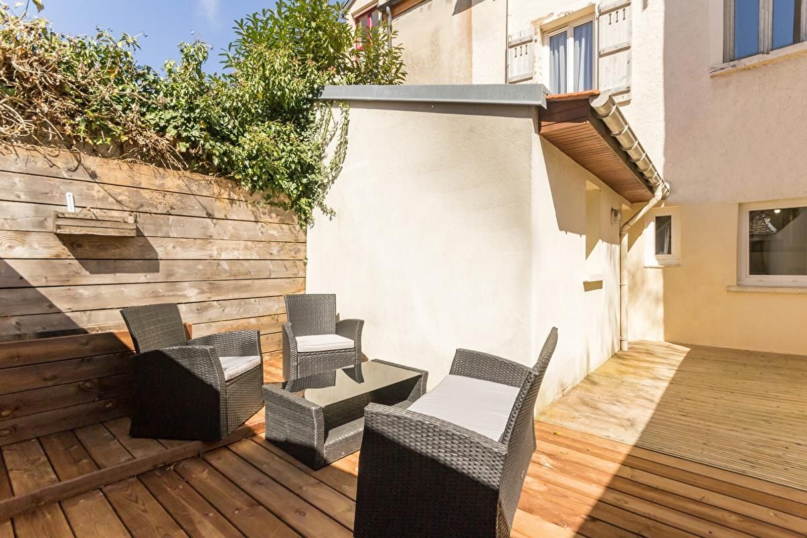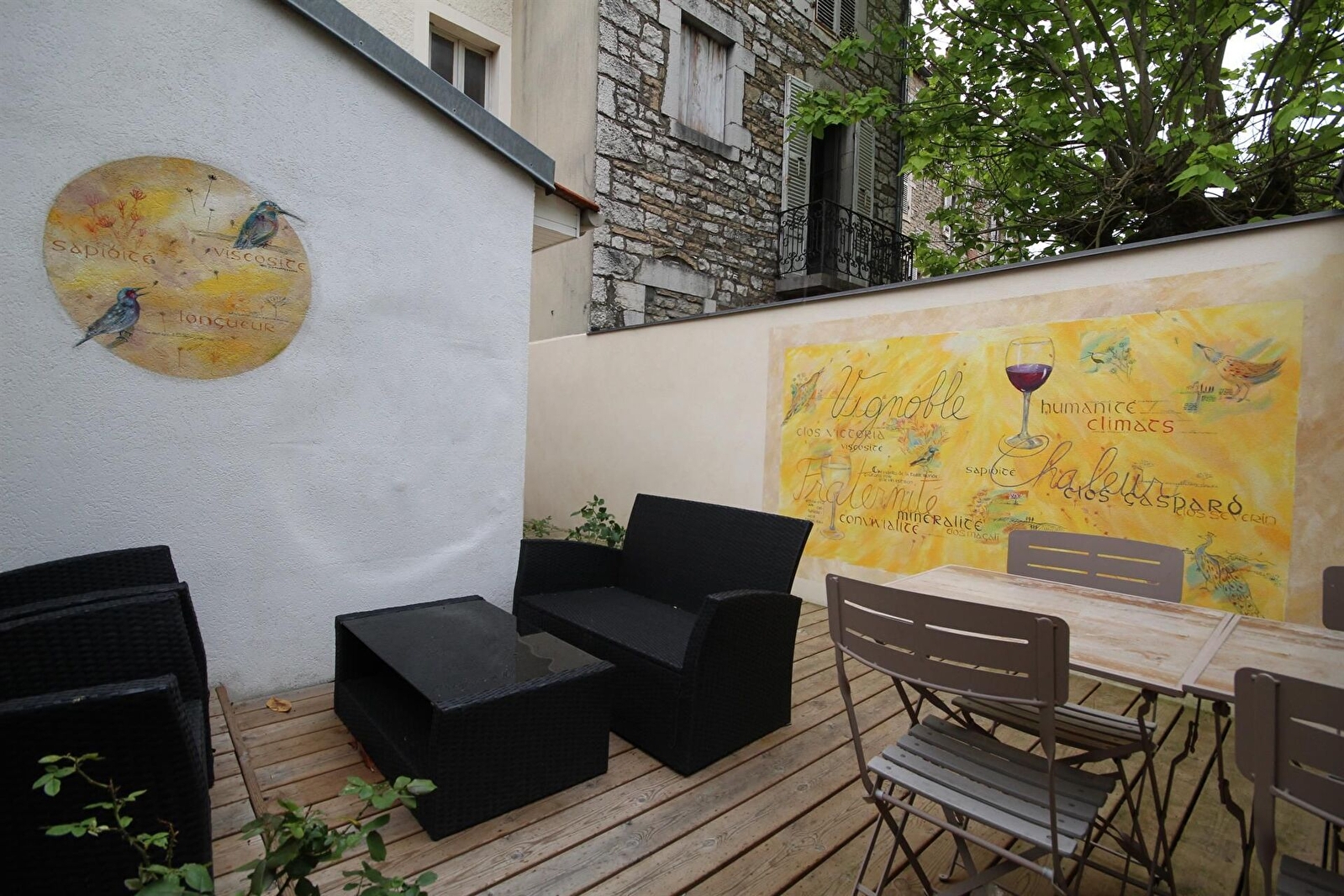A deux pas du centre de Nuits-Saint-Georges, maison de ville aménagée sur 2 niveaux. Rez-de-chaussée : séjour avec un espace salon et un espace salle à manger avec cuisine équipée. Salle de bains avec baignoire balnéo et douche. WC indépendant. A l'étage : une chambre avec un lit 140 et une chambre avec 2 lits de 90. Mezzanine avec un couchage d'appoint. Courette devant la maison et terrasse en bois de 25m² à l'arrière. Une place de parking devant le gîte et parking public à proximité.
