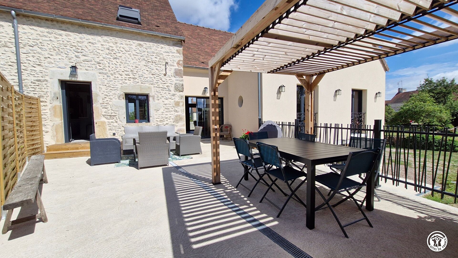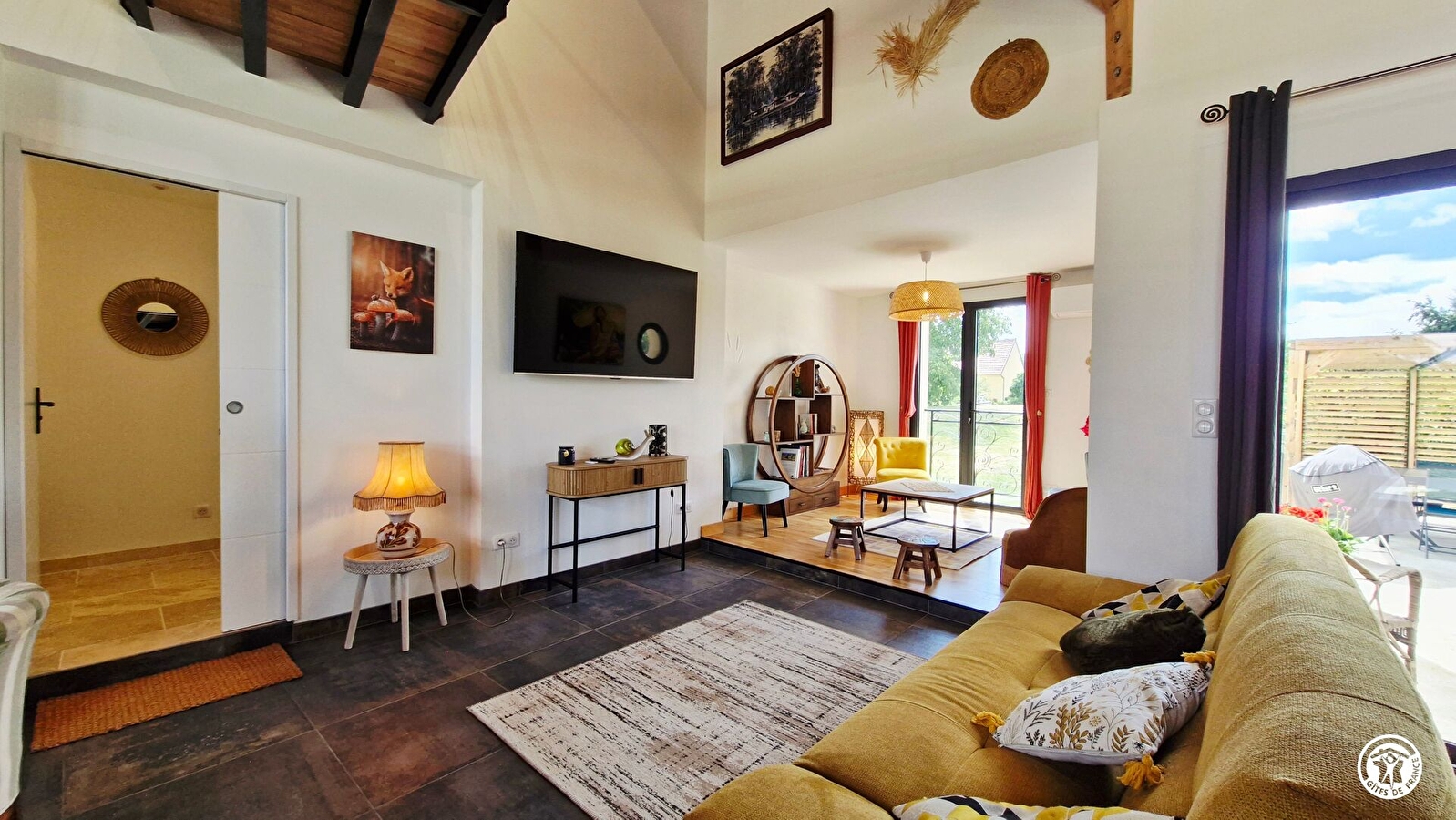 Au calme d'un petit village, cour à l’avant pour garer les voitures, entrée dans une grande pièce à vivre très lumineuse comprenant une grande cuisine intégrée et équipée, un grand salon divisé en plusieurs espaces détente avec grande télé et internet ; accès direct à la terrasse avec salon de jardin sous pergola et salon de détente sans vis-à-vis ; grand jardin (non clos) où se balader avec hamacs et transats propice au repos ; terrain de pétanque à proximité. En rez-de-chaussée également un wc indépendant avec lave-main ; ainsi qu’une chambre ( 1 lit 160x200) et sa salle d’eau privative (wc et douche grande dimension). A l’étage 2 coins nuits de part et d’autre de la passerelle offrant une vue plongeante sur la pièce à vivre : d’un côté une chambre avec 1 lit 160x200 et sa salle d’eau privative (wc et douche grande dimension) : de l’autre côté 2 chambres équipées chacune de 2 lits 80x200 jumelables à la demande en 1 lit 160x200 + 2 canapés convertible 160 équipés d’un matelas grand confort, se partageant une salle d'eau (douche grande dimension) et un wc indépendant. En rez-de-jardin se trouve la dernière chambre avec accès indépendant depuis le jardin : chambre en partie voutée (cave) avec sa salle d’eau privative (wc et douche grande dimension).
