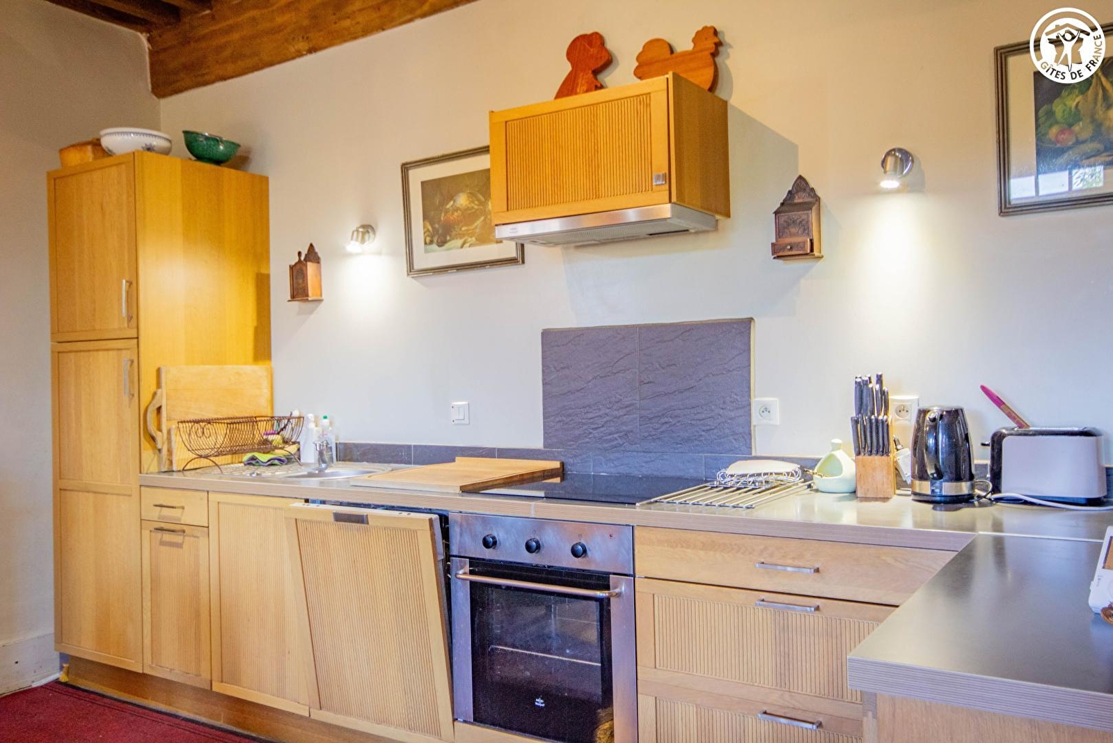 Composition : Maison de bourg mitoyenne. Wifi. Chauffage central gaz + cheminée. Gîte duplex. Rdc : Buanderie. 1er ét. : séjour-cuisine-salon, chambre avec salle d'eau/WC privative (2 lits 1 p. 90x200cm). 2ème ét. : 2 chambres (lit 2 p. 160x200cm - salle de bain/WC privative / 2 lits 1 p. 90x200cm - salle d'eau/WC privative) . Balcon-terrasse abrité + jardin clos privatifs. Garage privé. Local vélos. Toutes commodités sur place.