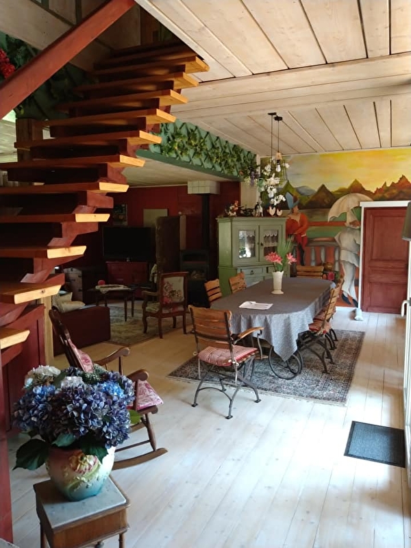 Maison tout confort "L'Estompe" dans un hameau calme et retiré, située idéalement à 4 km du village à proximité de la Région des 1000 Étangs et de la Planche des Belles Filles. Maison d'une capacité de 6 personnes qui vous propose un accueil de charme grâce à une décoration recherchée et originale alliant brocante et expression artistique. Maison spacieuse au milieu d'un grand jardin avec étang comportant 3 chambres personnalisées, 2 chambres lit 2 personnes et 1 chambre lit double ( 2 matelas de 95cm). Deux salles, jacuzzi 5 personnes.