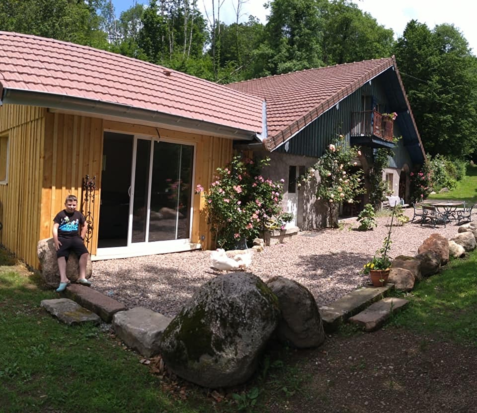Grande pièce à vivre avec parquet au sol, cuisine ouverte équipée lave-vaisselle, micro-ondes, frigo, four électrique, télévision (TNT) parabole possibilité d'amener votre démodulateur, salon de jardin , barbecue, possibilité de baignade en étang, pêche.