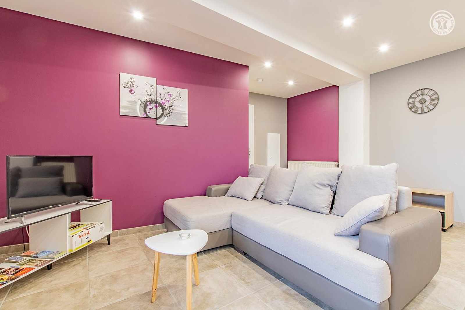 Composition : Maison comprenant 2 gîtes et l'habitation des propriétaires en mitoyenneté (totale indépendance entre chaque logement). Chauffage central gaz. Wifi. Lave-linge commun (situé dans une buanderie). Gîte de plain-pied : séjour-cuisine-salon (canapé convertible 2 p. de 140x190cm en appoint), une chambre (lit 2 p. 160x200cm), salle d'eau (grande douche/wc). Terrasse privative en gravier. Terrain clos + aire de jeux + local vélos + salle de jeux en commun. Parking privé. Commerces 4.5 km. Commodités dont supermarché à 14 km.